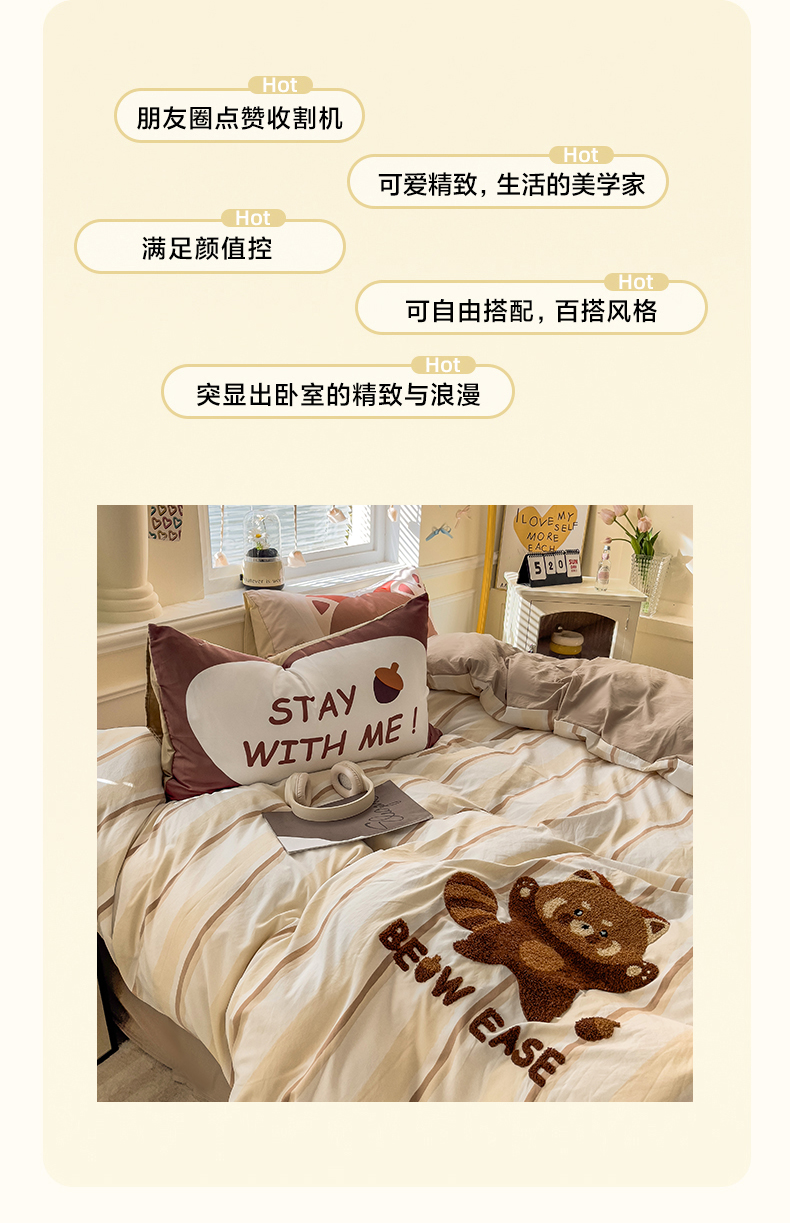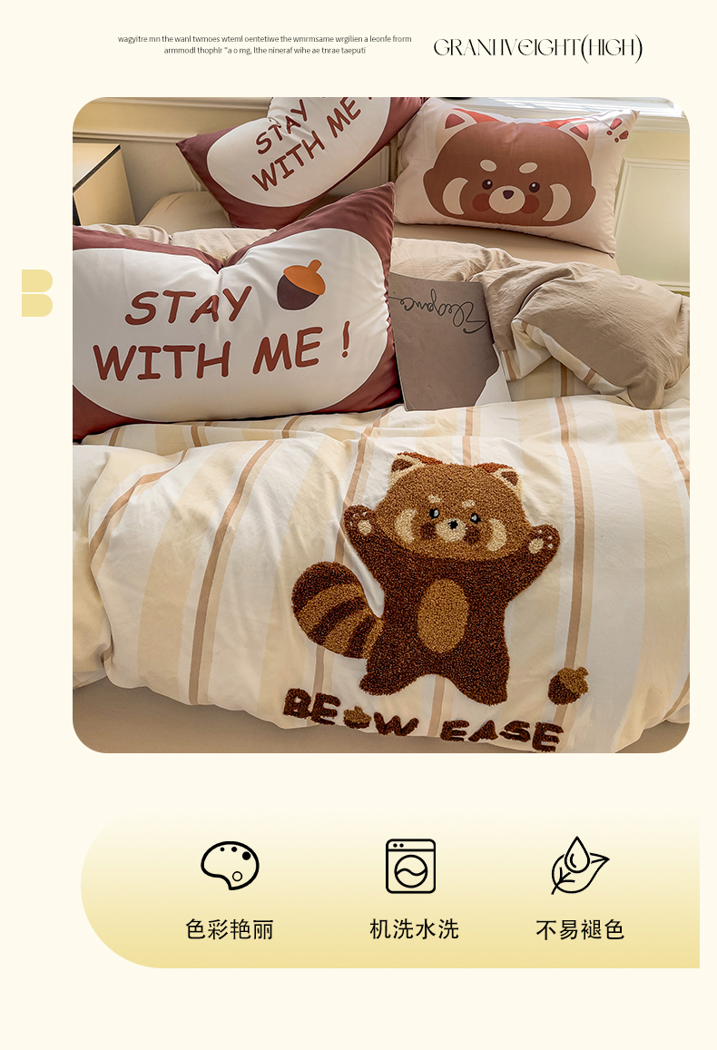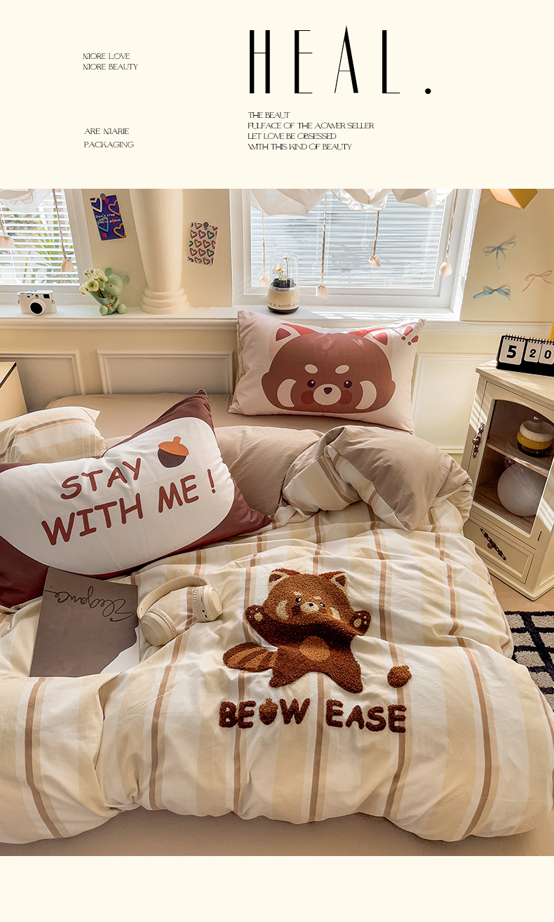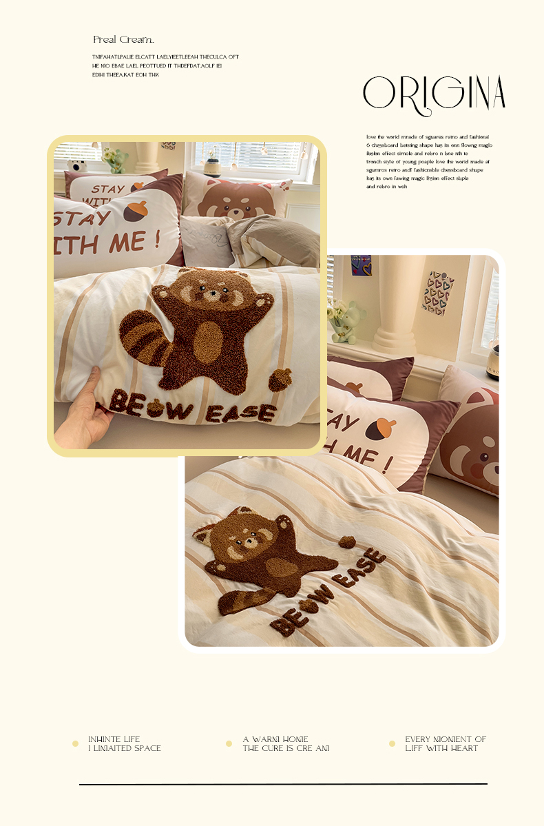 当前位置: 91家纺网 > 商品网购 > 床品套件 > 四件套 > 全棉普通四件套 > 尤米【提供买家秀】2025新款水洗棉大版卡通毛巾绣四件套 小浣熊-咖条
