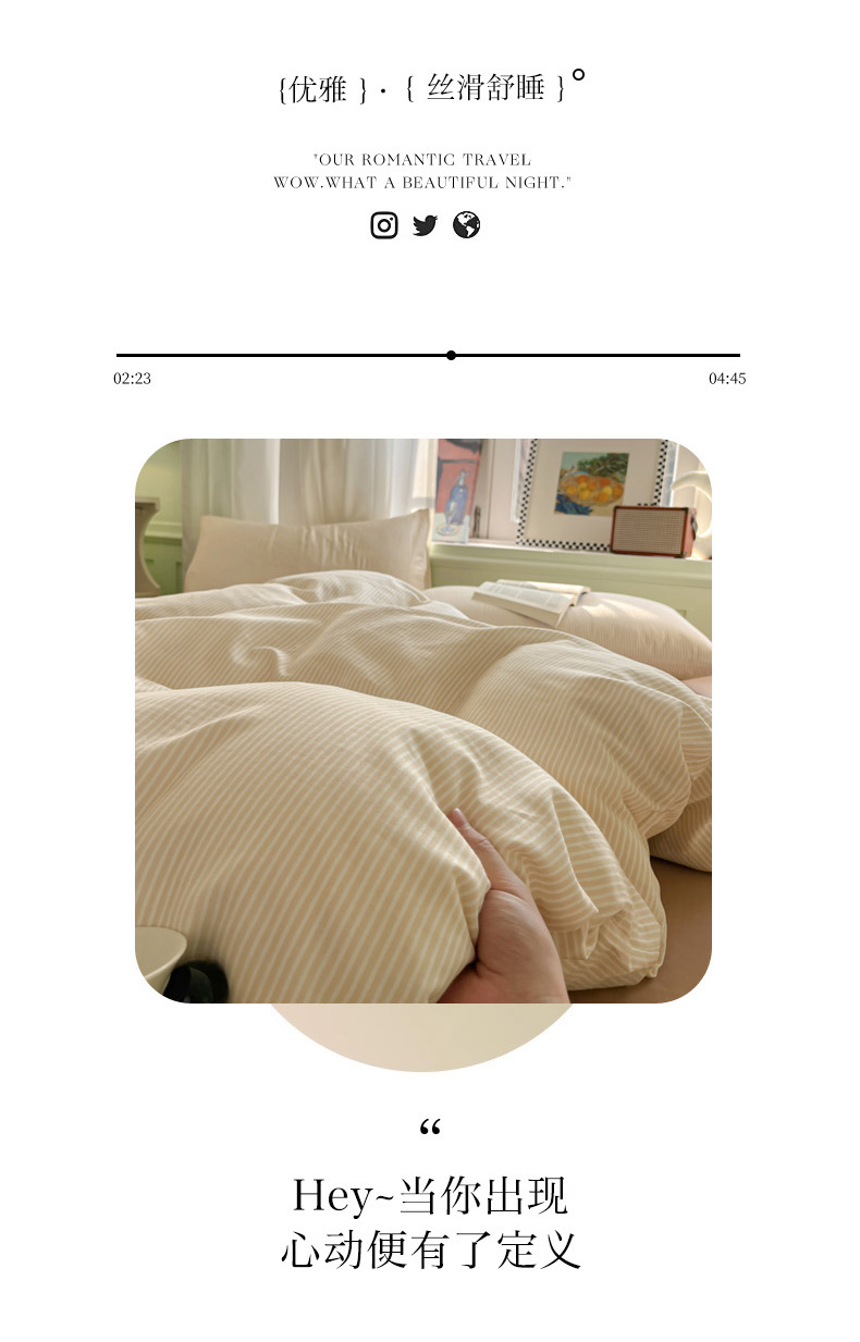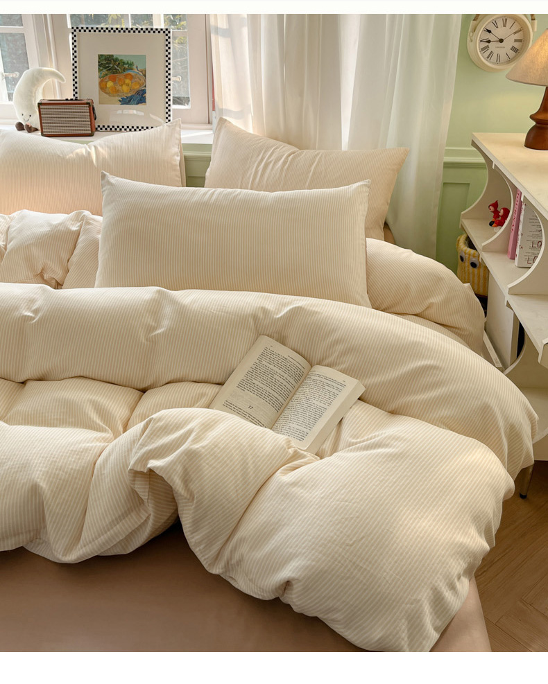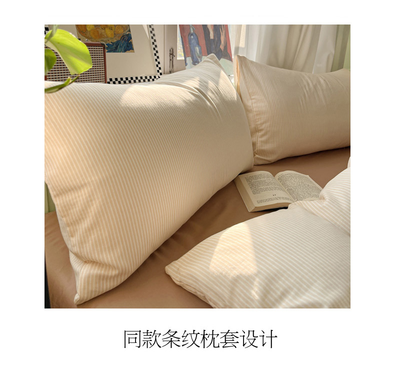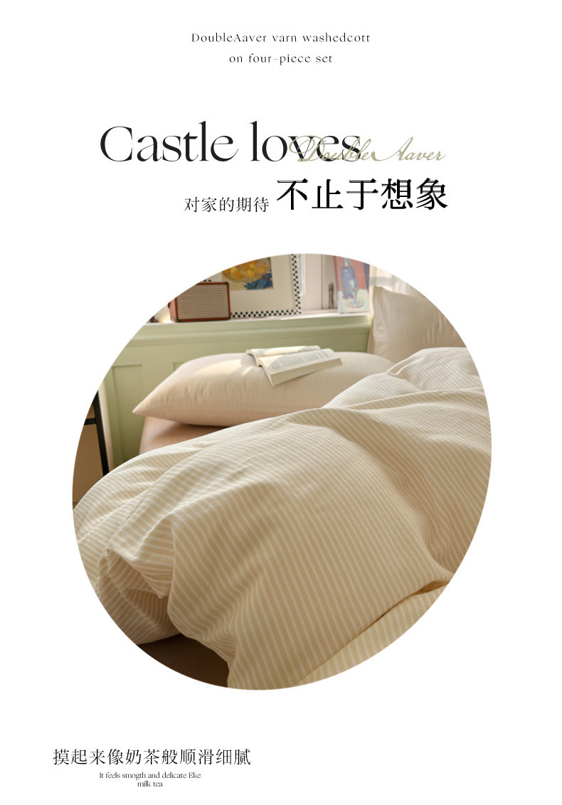 眠博士2025新款全棉双层纱 四件套 双层纱-浅咖条