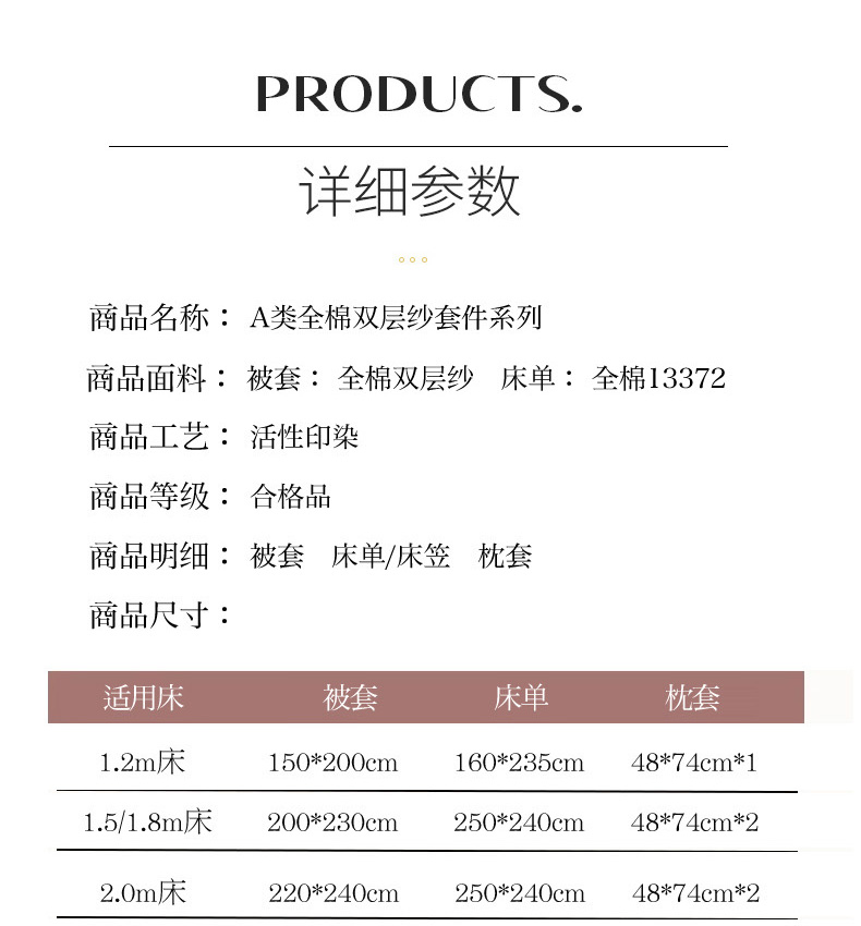 商品名称:眠博士2025新款全棉双层纱 四件套 双层纱-浅咖条