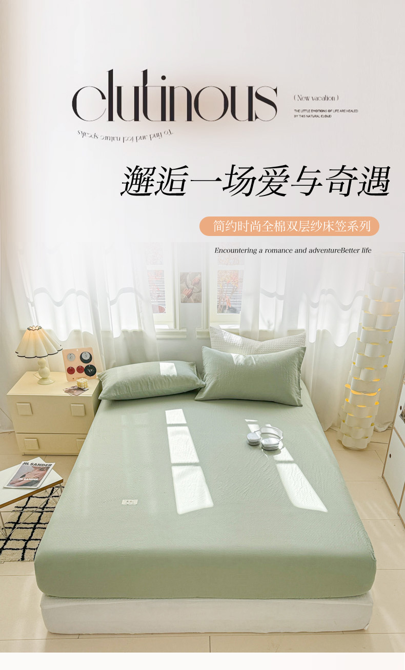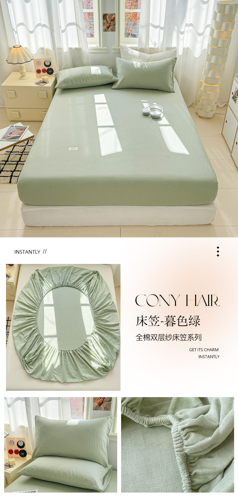 • 91家纺网 家纺一手货源 找家纺 眠博士2025新款 全棉双层纱 单床笠 双层纱床笠-暮色绿