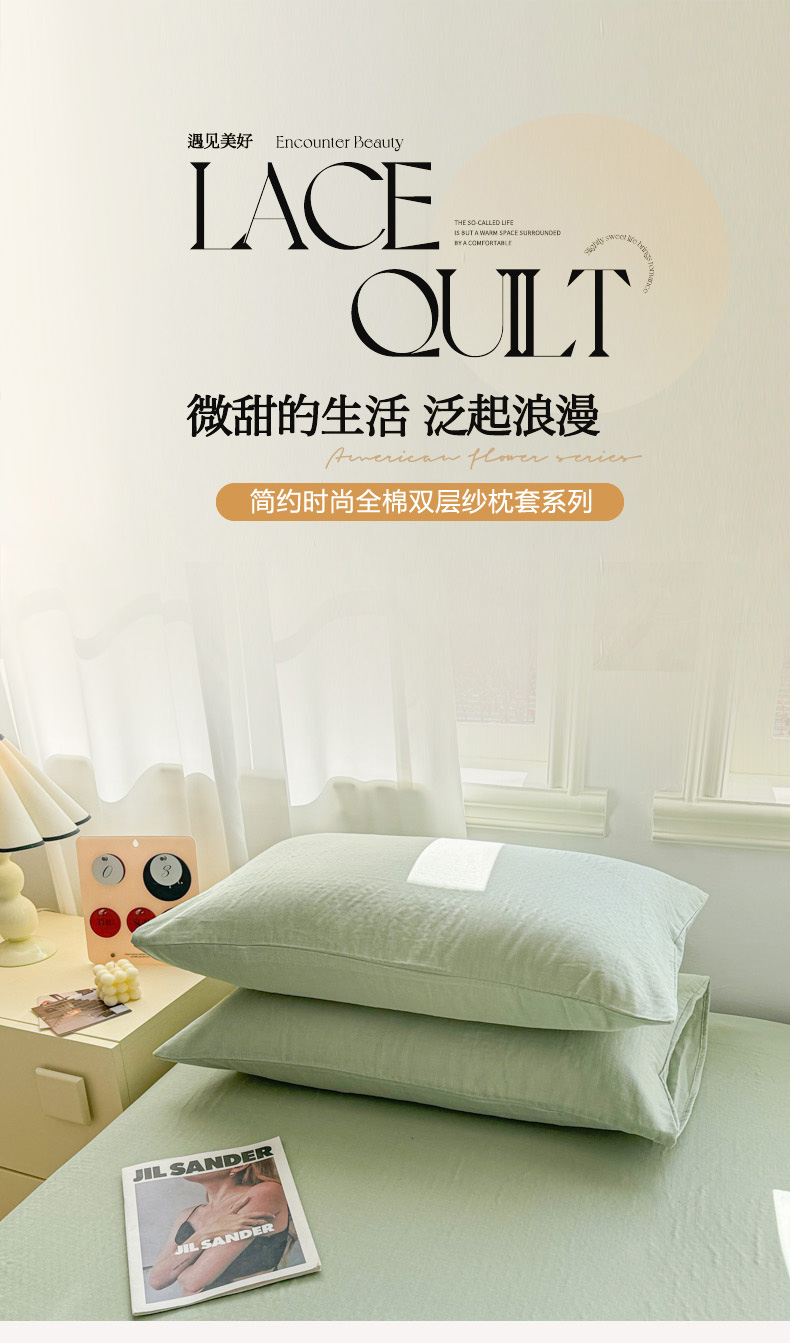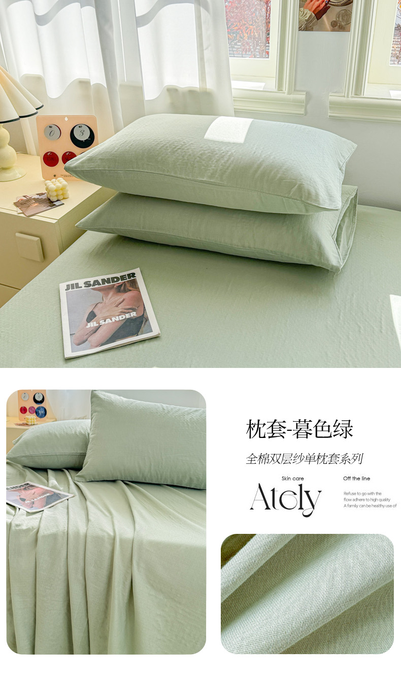 商品名称:眠博士2025新款全棉双层纱单枕套 双层纱枕套-暮色绿