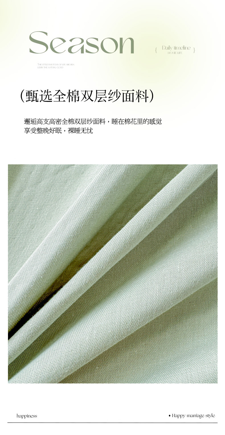 眠博士2025新款全棉双层纱单枕套 双层纱枕套-暮色绿