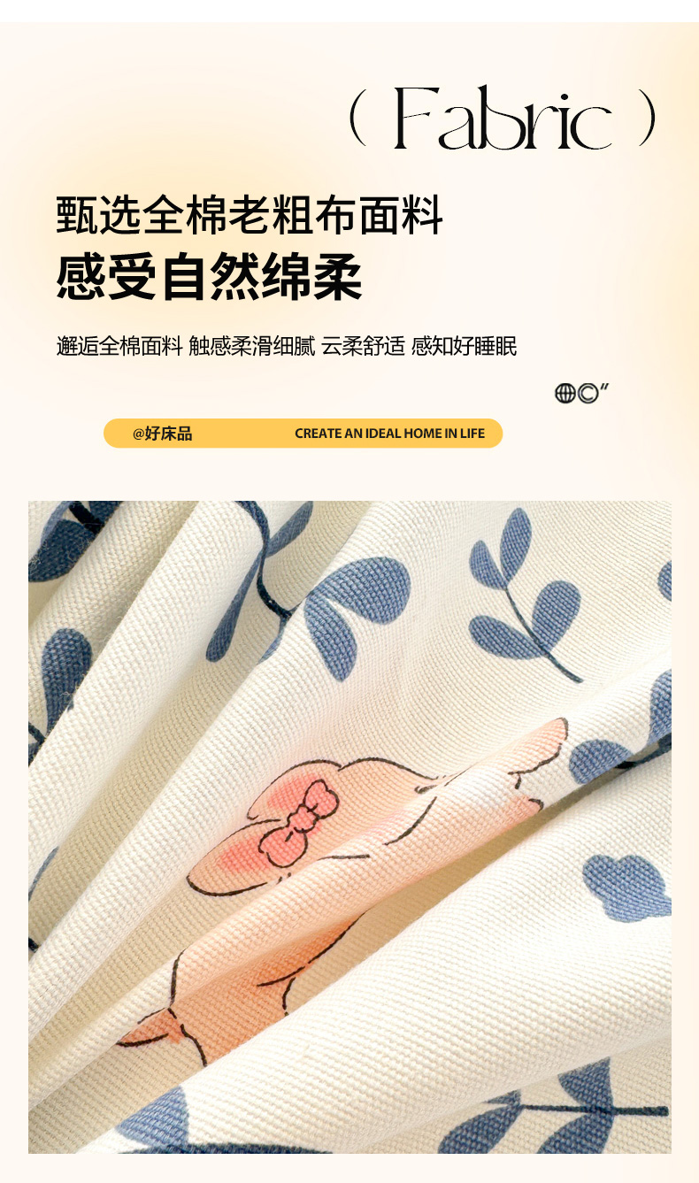 • 91家纺网 家纺一手货源 找家纺 眠博士2025新款全棉老粗布床笠 老粗布床笠-绿叶兔