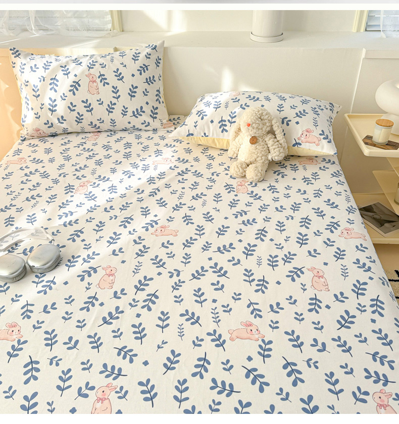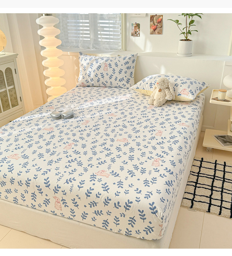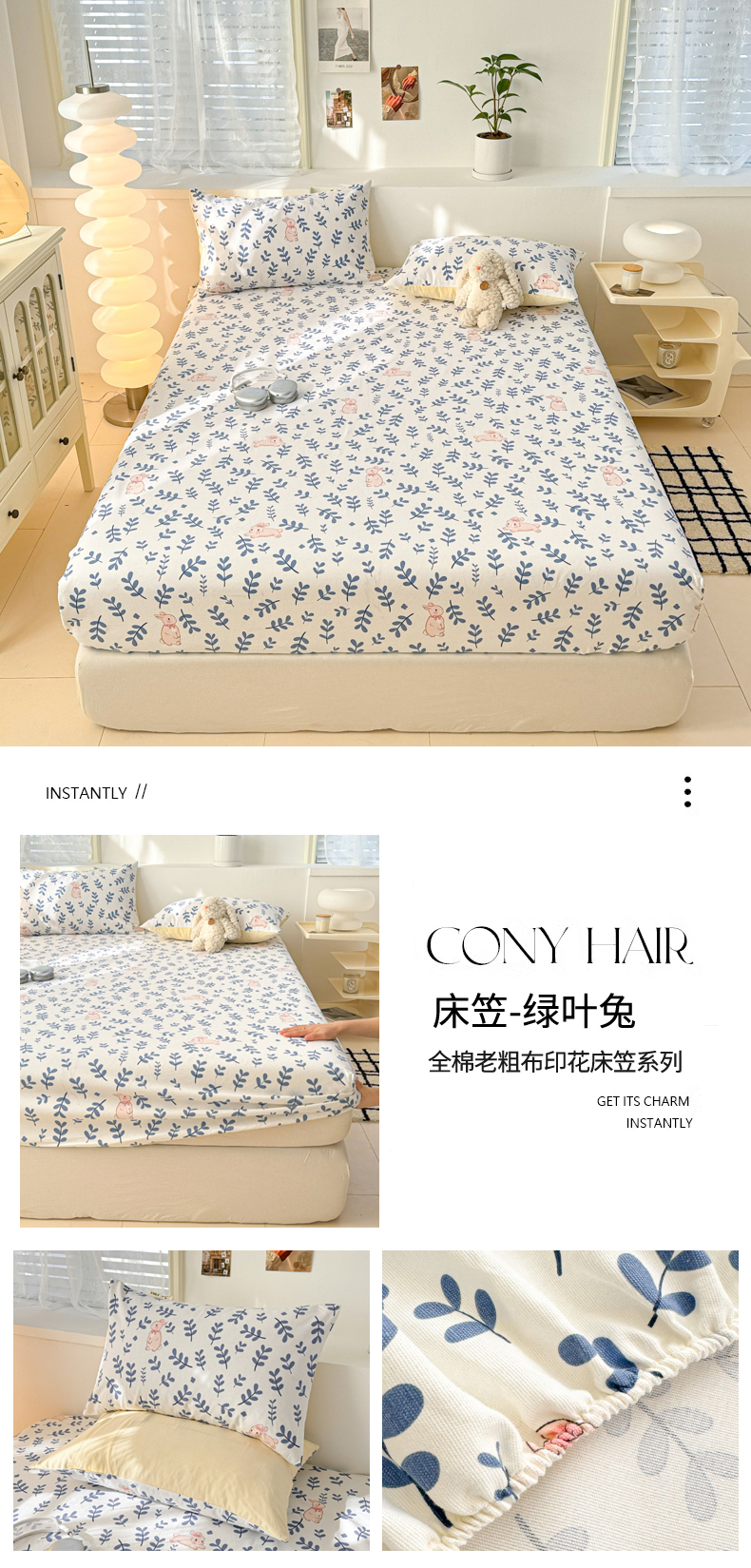 眠博士2025新款全棉老粗布床笠 老粗布床笠-绿叶兔