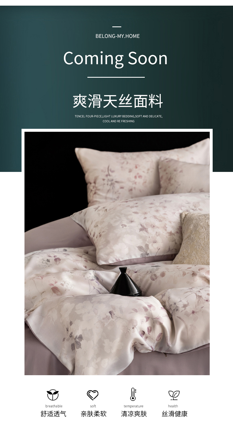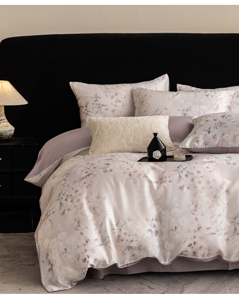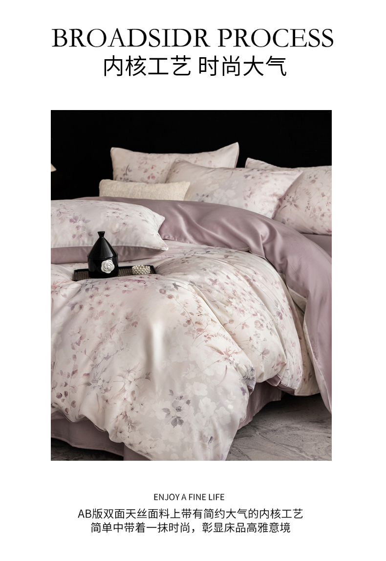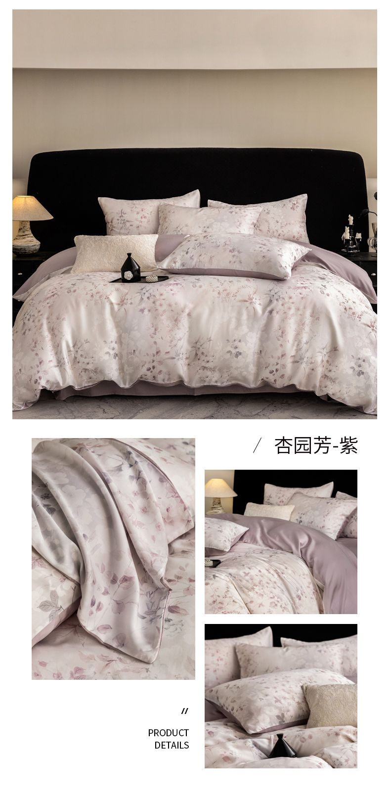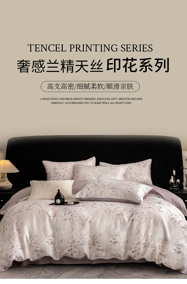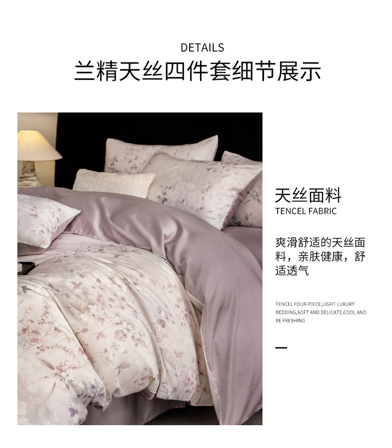 立奥被业 2025年新款100%兰精天丝四件套天丝数码印花四件套 杏园芳-紫