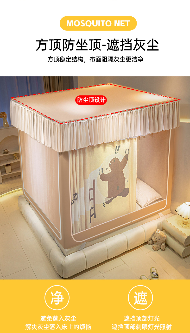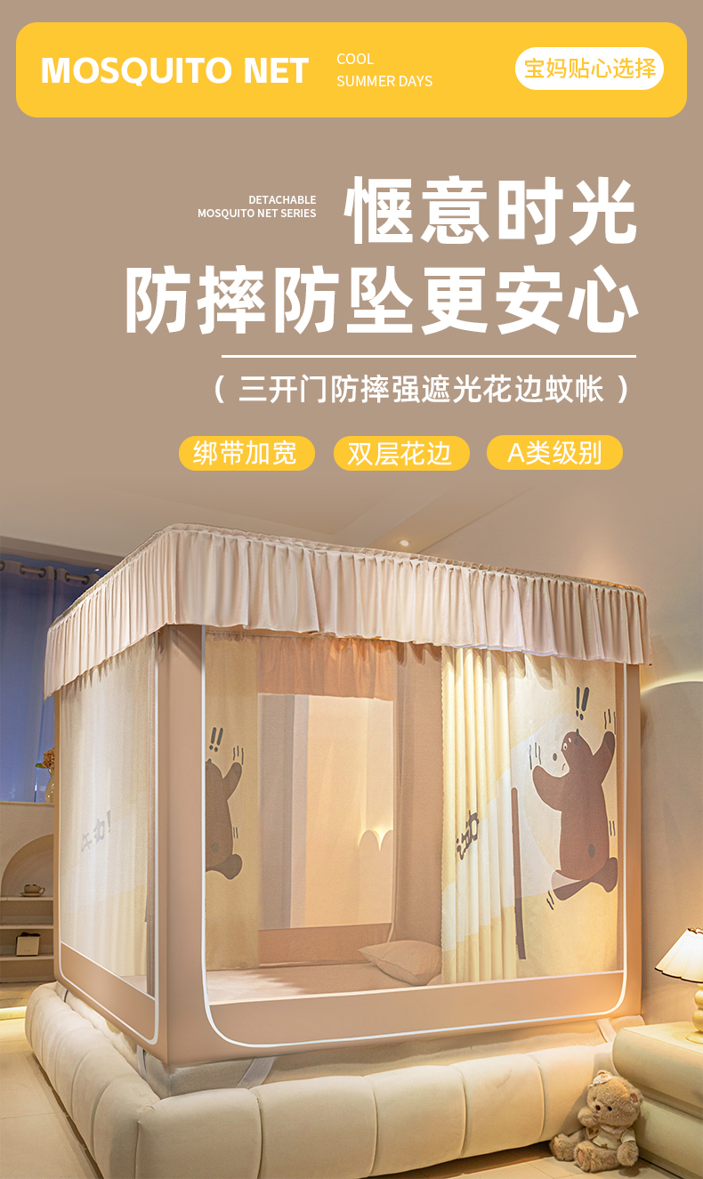 商品名称:飞轮海蚊帐 2025新款三开门方顶花边防摔遮光蚊帐-Z39 不许动