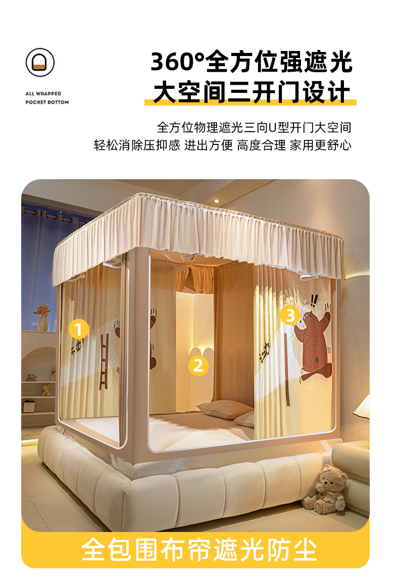 (总)飞轮海 2025新款全包遮光防蚊蚊帐Z31,黛蓝,奶油黄,香槟