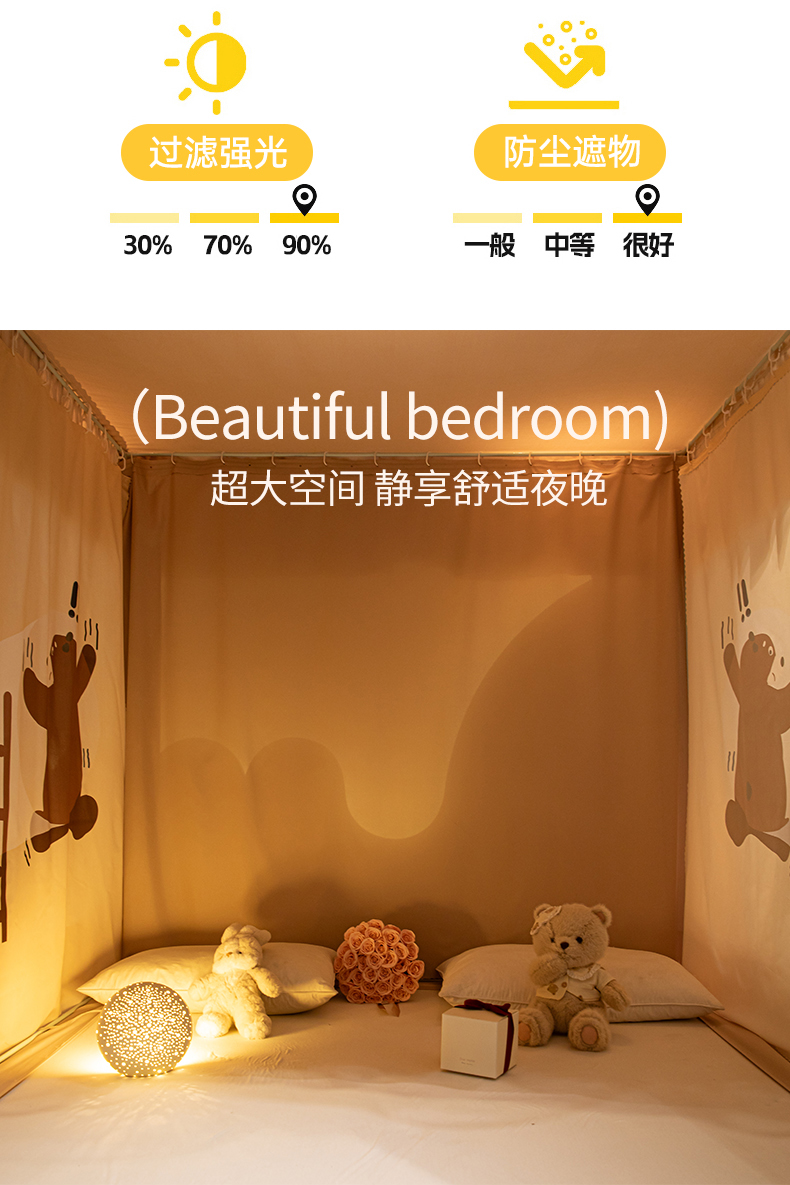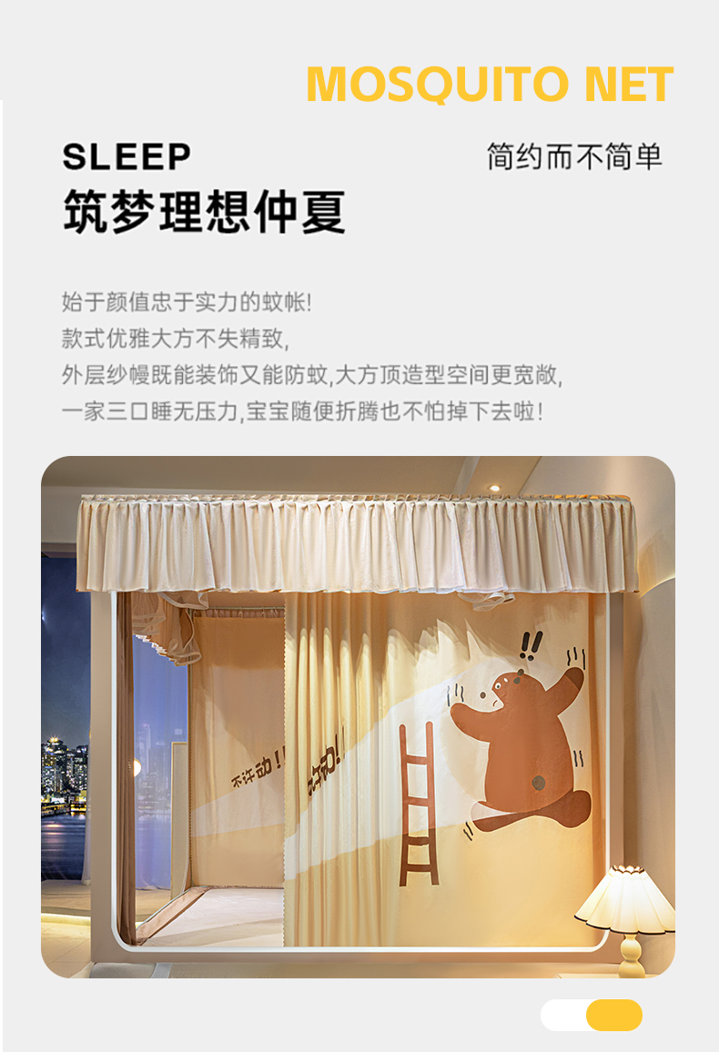 飞轮海蚊帐 2025新款强遮光防蚊学生蚊帐-XZ-99(靠墙帘选配)熊猫宝,熊猫宝