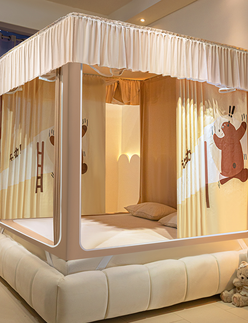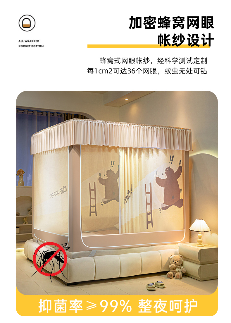 (总)飞轮海蚊帐 2025新款三开门方顶花边防摔遮光蚊帐-Z39,你好蛙,不许动,快乐家族,生活有趣,熊猫宝