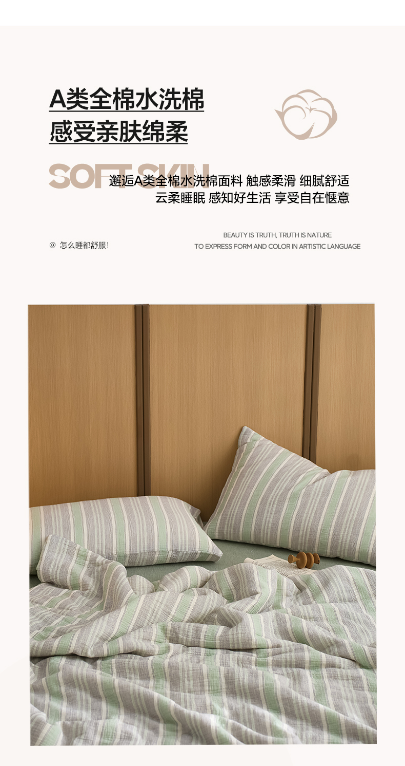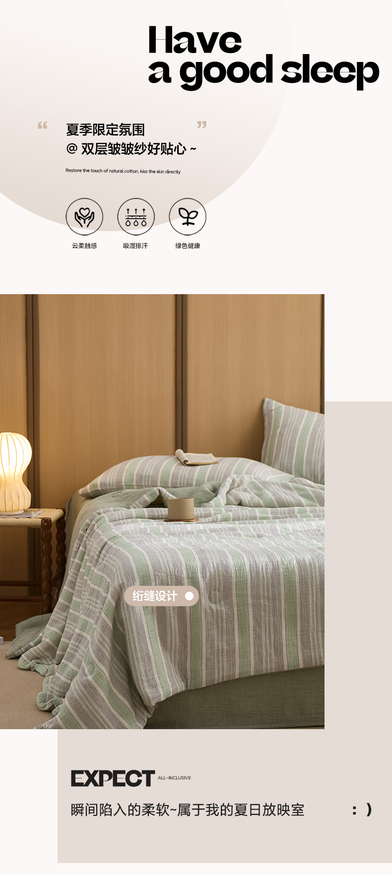 • 91家纺网 家纺一手货源 找家纺 一加一 2025新款A类母婴级水洗全棉无印双层皱皱纱牛奶蛋白夏被四件套 时予灰绿