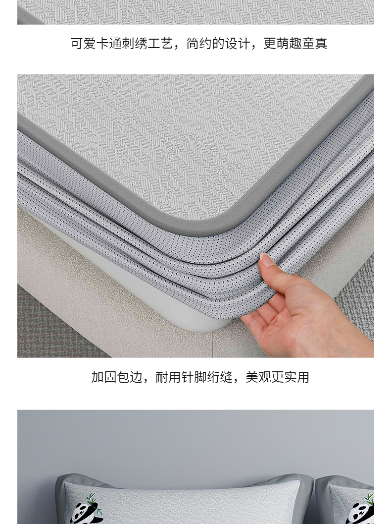 商品名称:阿牛席业 2025新款自然凉感可爱卡通刺绣简约凉席-小冰熊系列 小冰熊-灰(床笠)