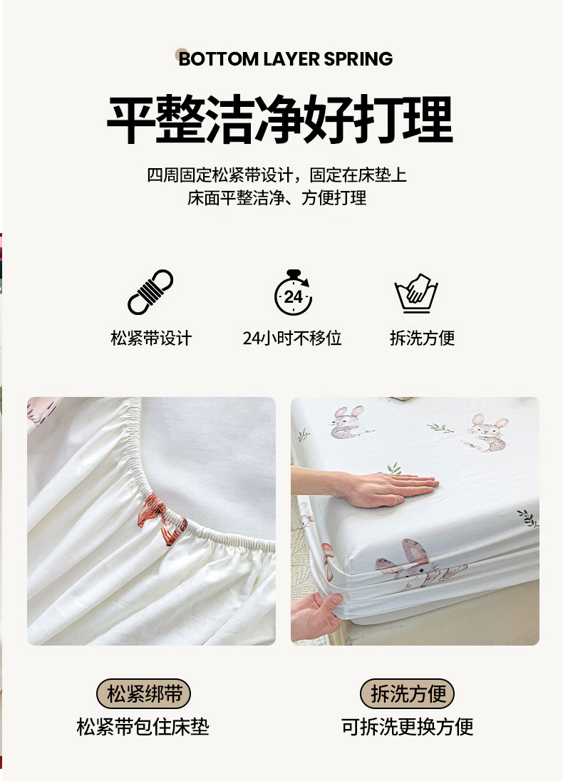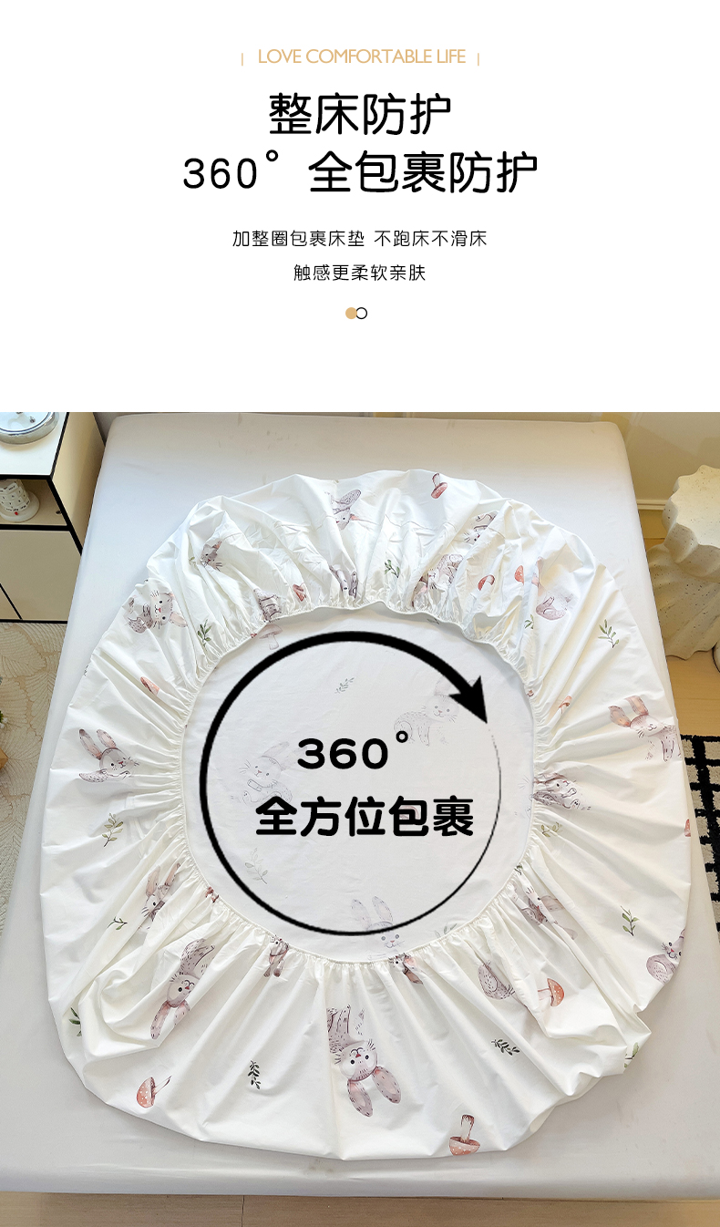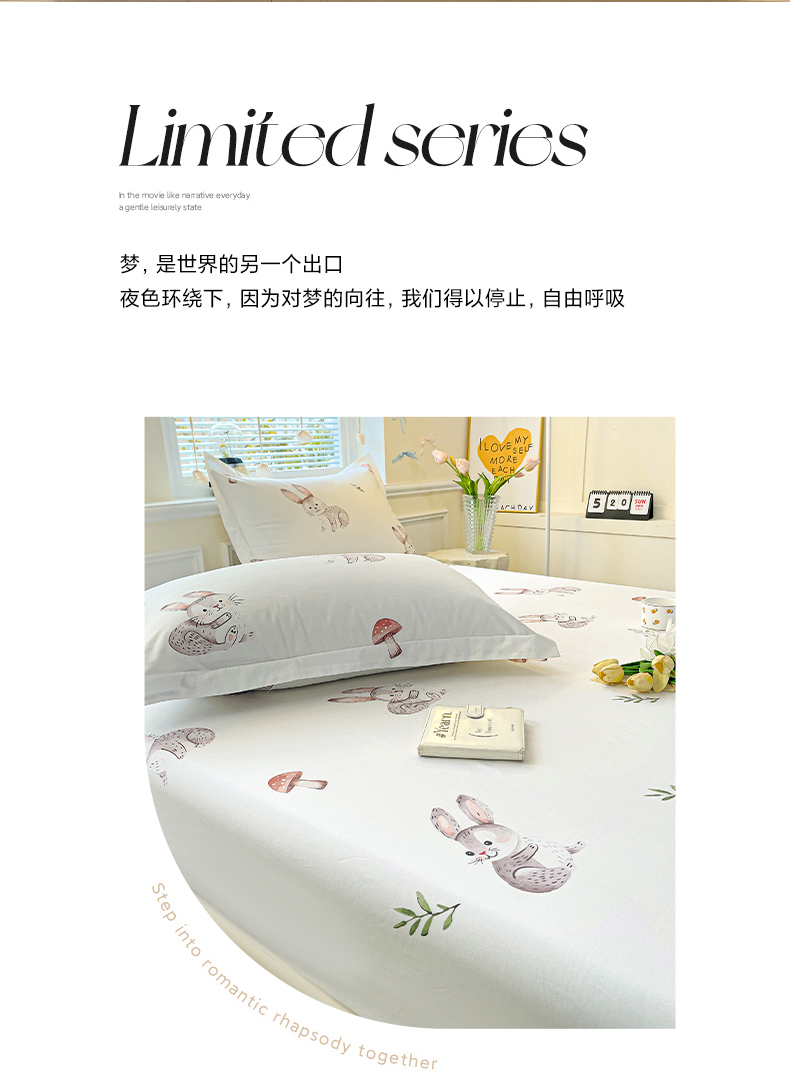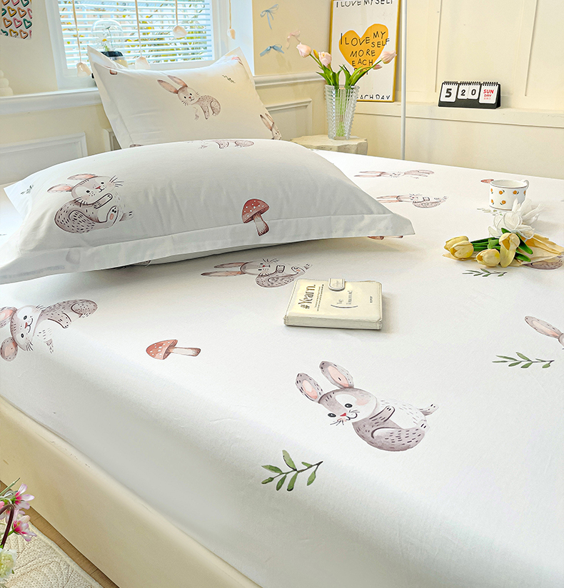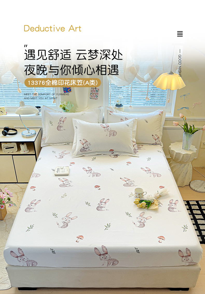 大柏树 2025新款全棉13376印花四件套系列(可定制)-单床笠小萌兔