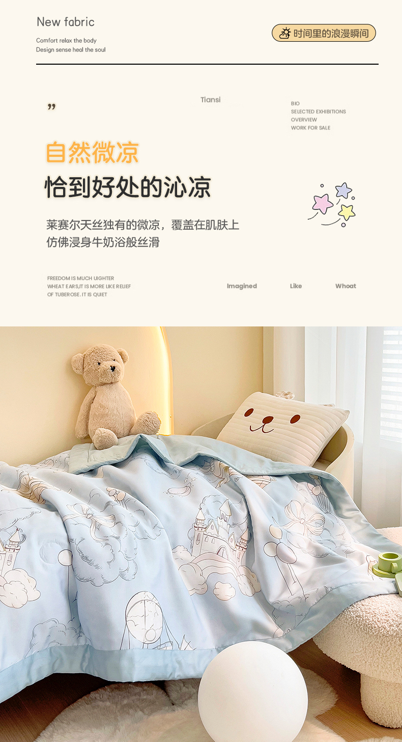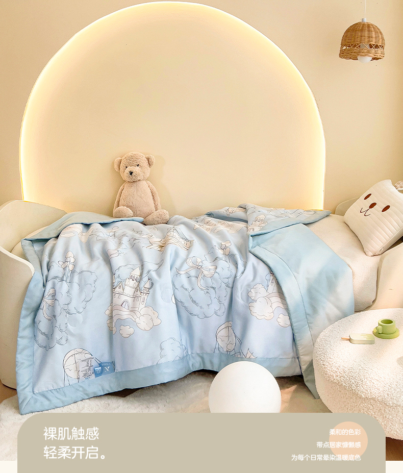 商品名称:御棉坊 2025新款A类50天丝数码印花夏被子被芯 城堡飞船蓝