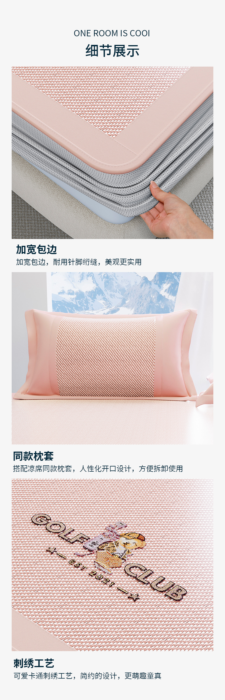 商品名称:阿牛席业 2025新款凉感PE冰藤凉席系列-纯逸 纯逸-粉(床笠)