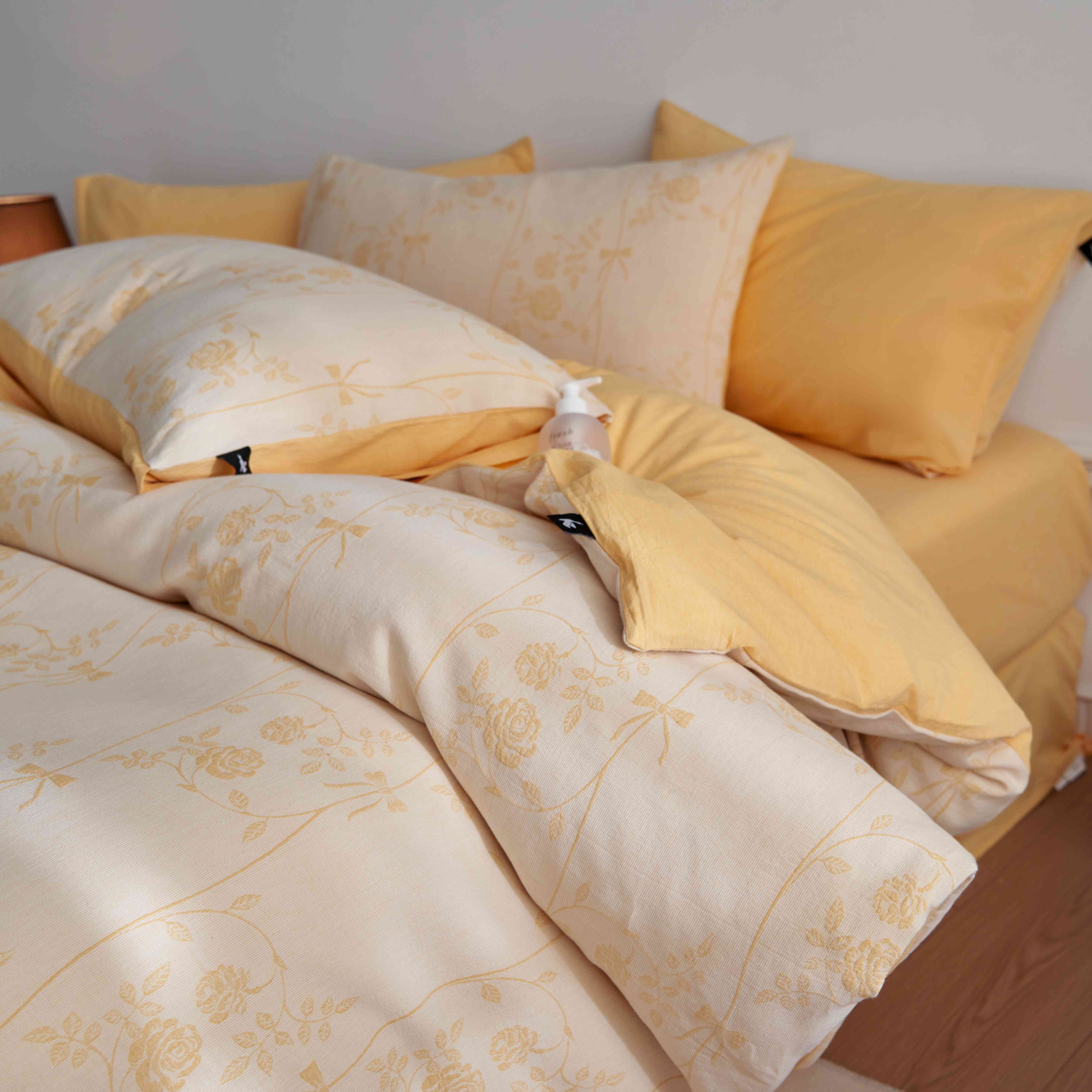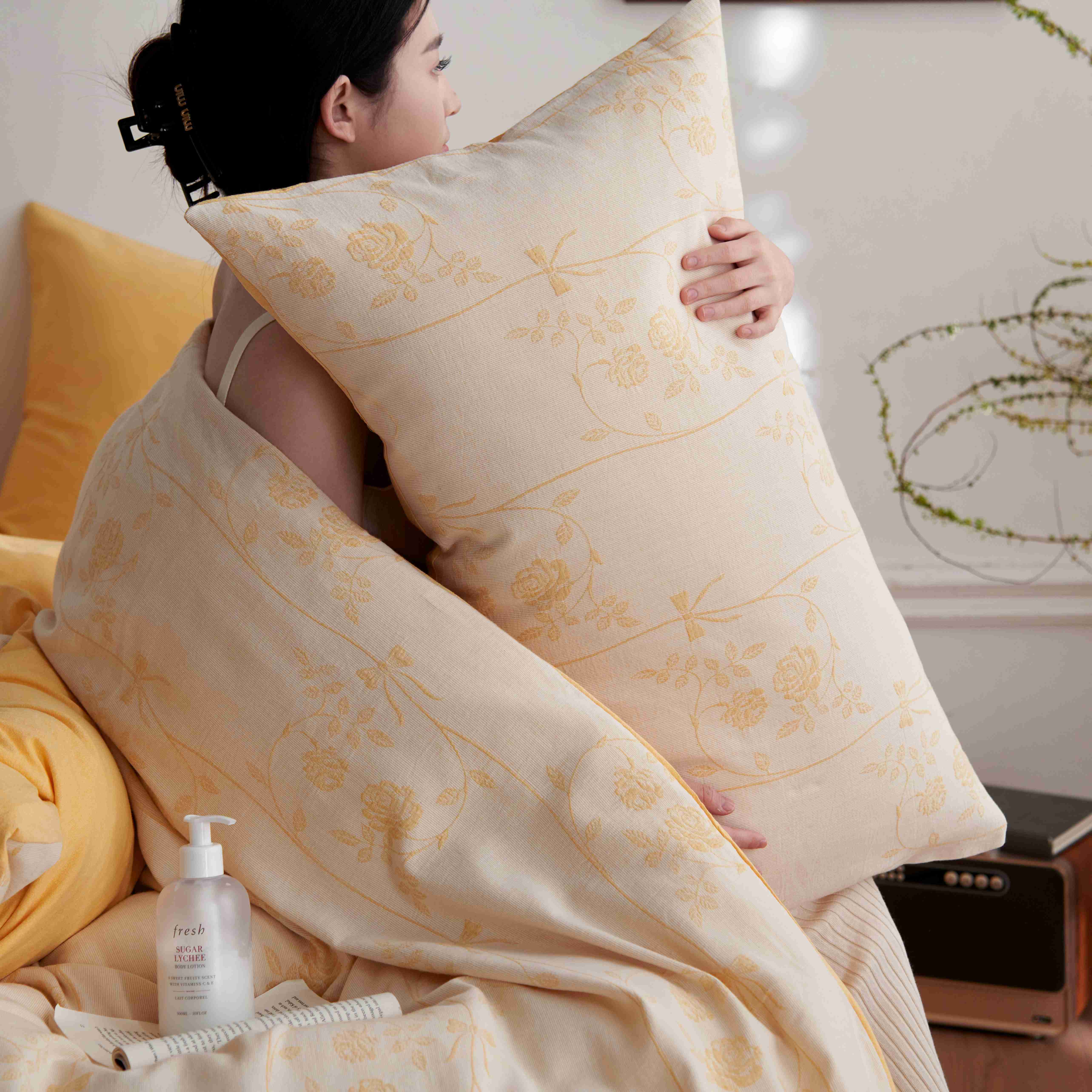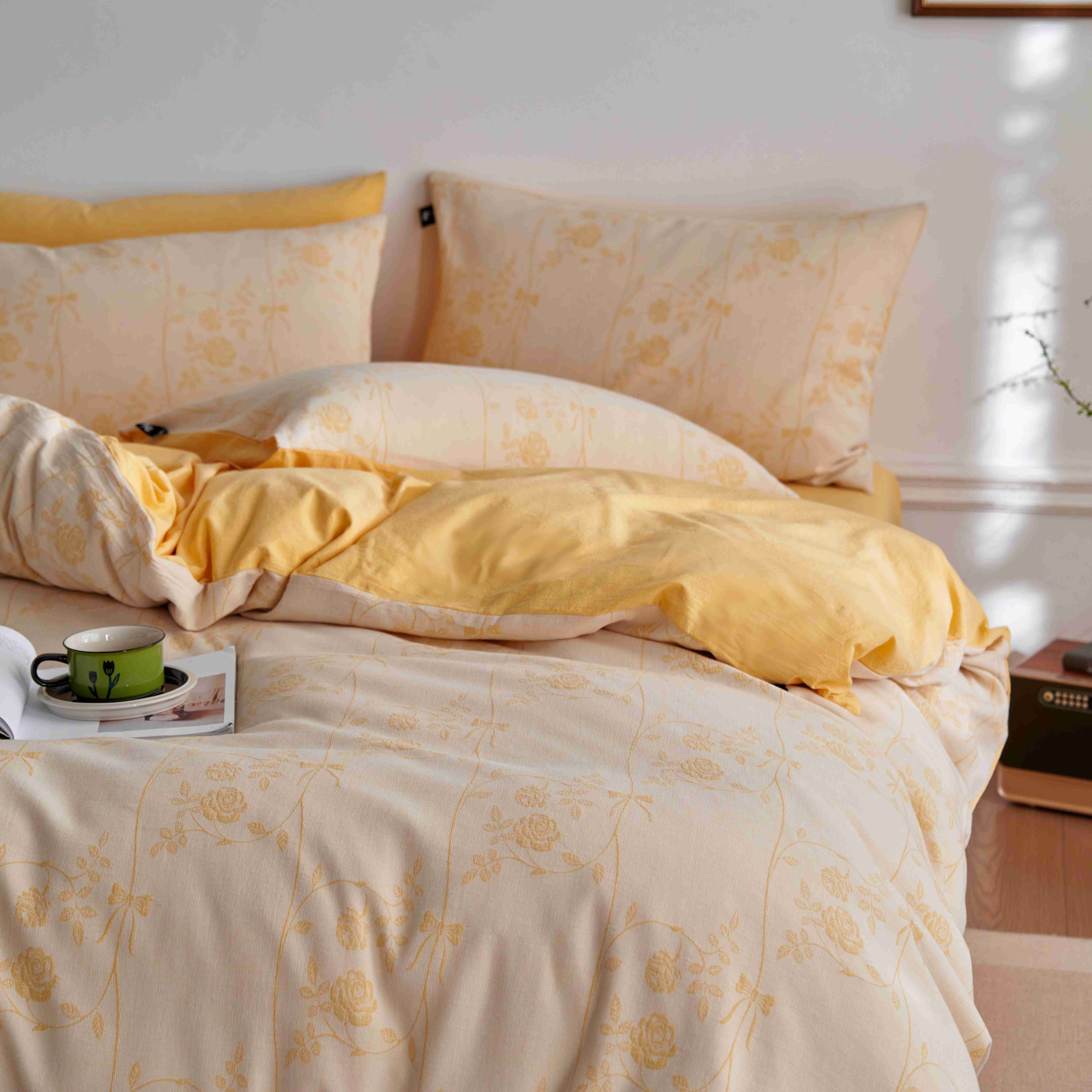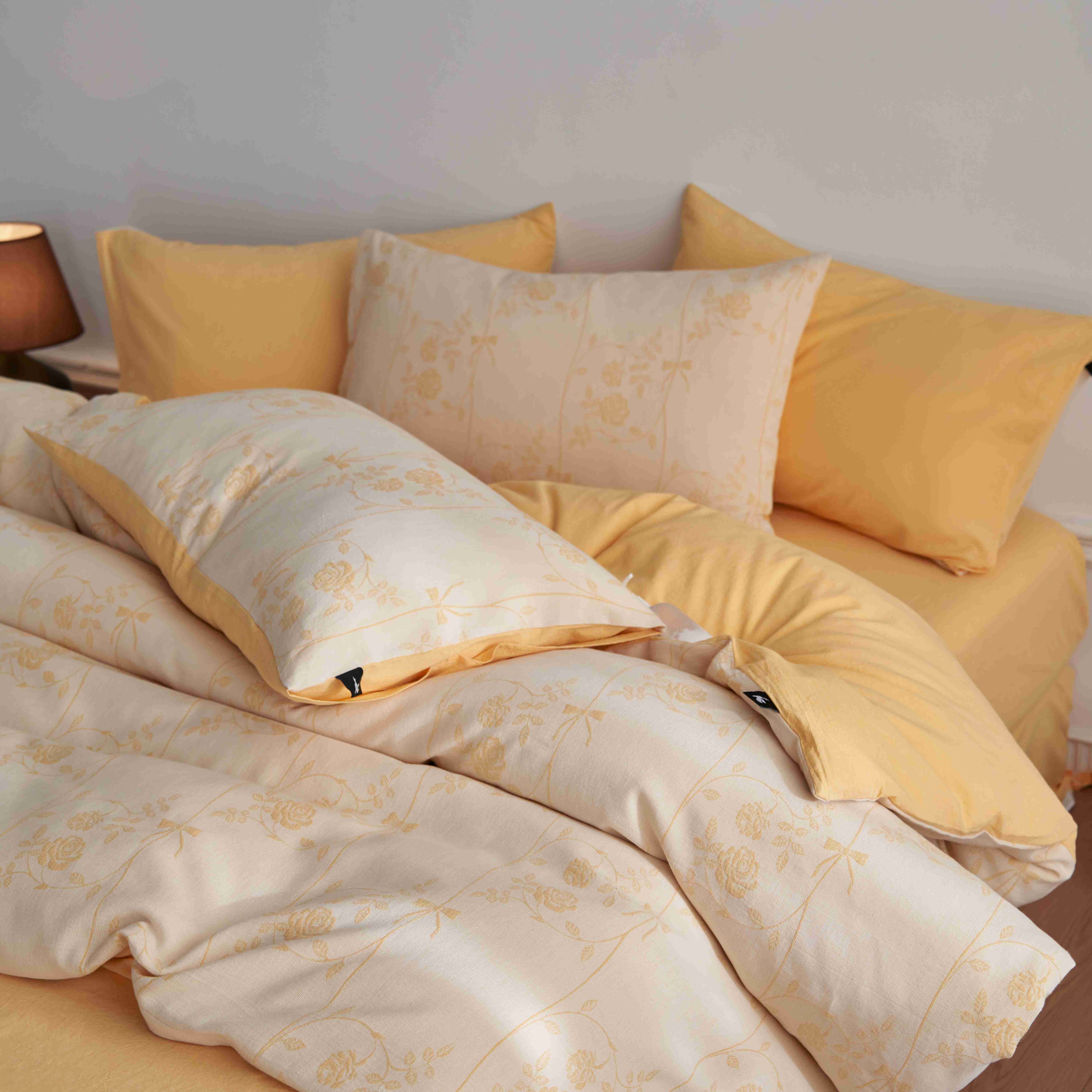 商品名称:安莱生活 2025新款60s双层纱色织大提花枝上玫瑰四件套系列 枝上玫瑰-嫩黄