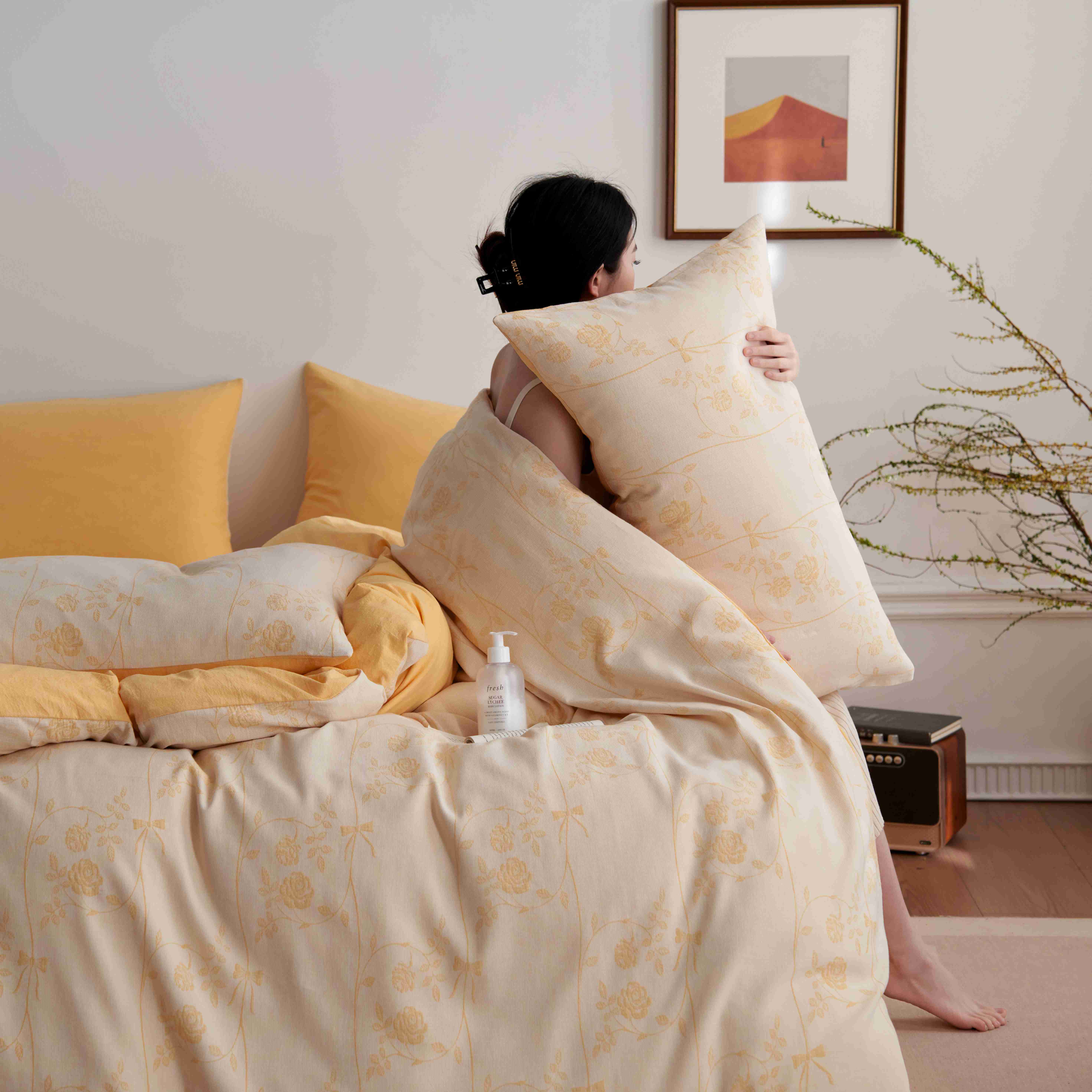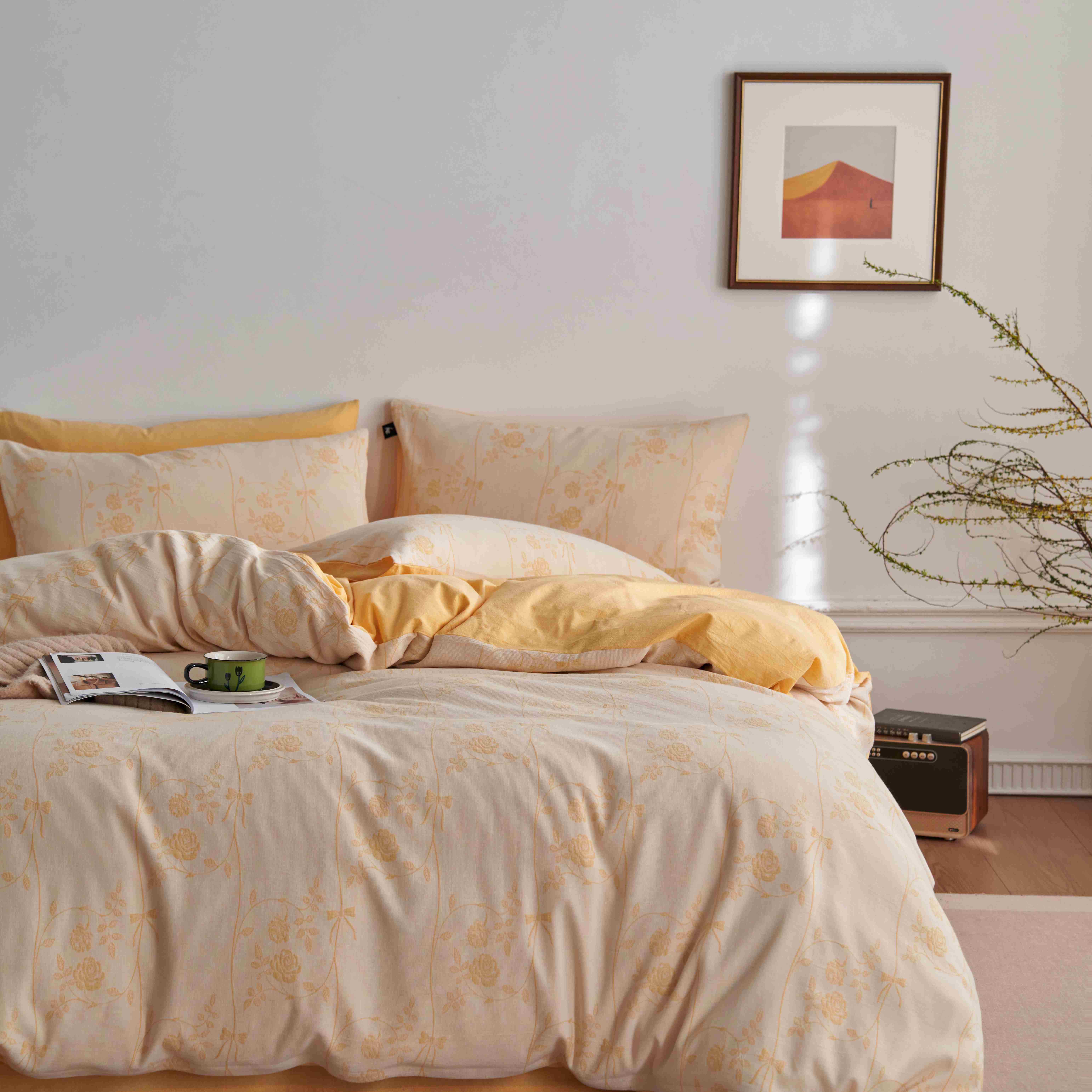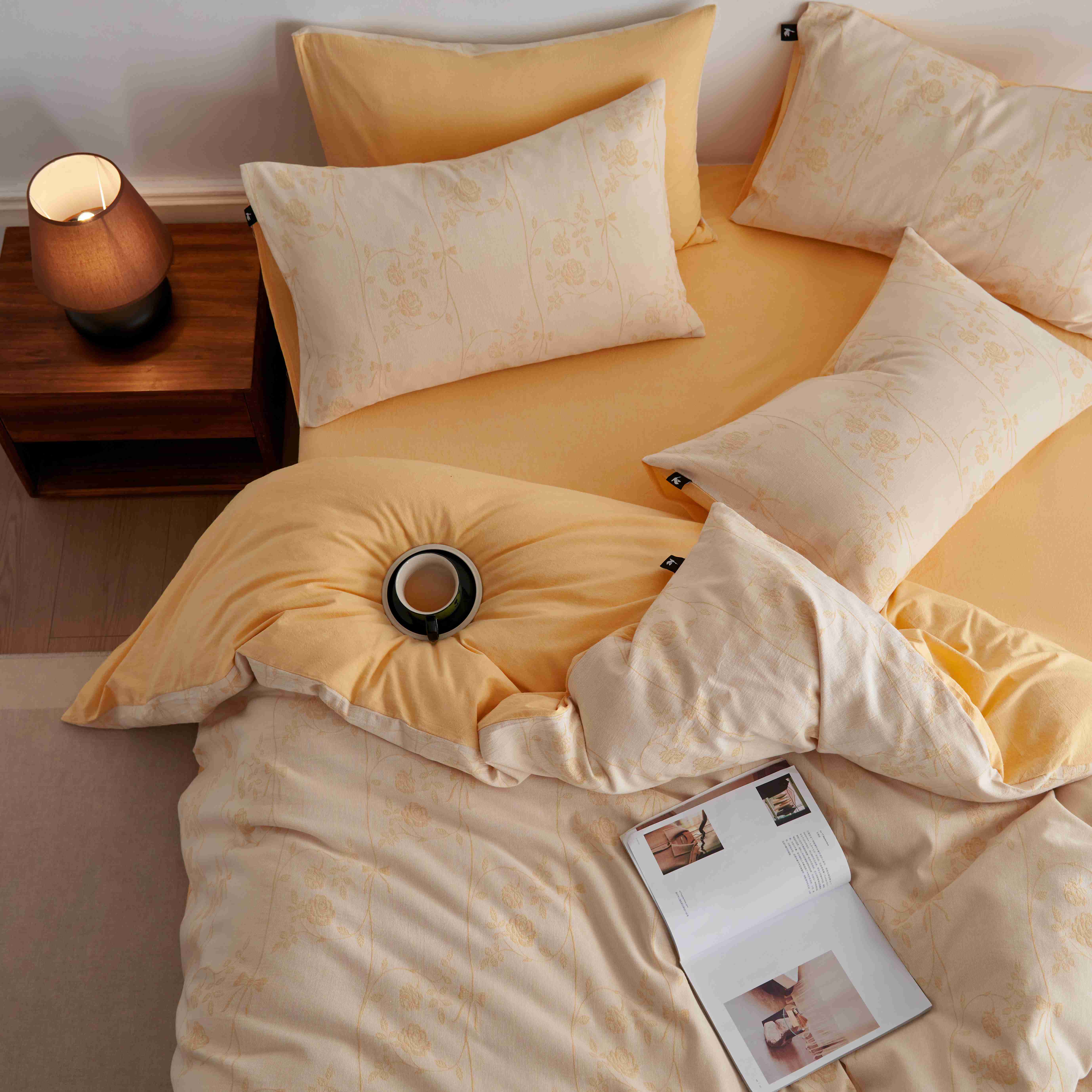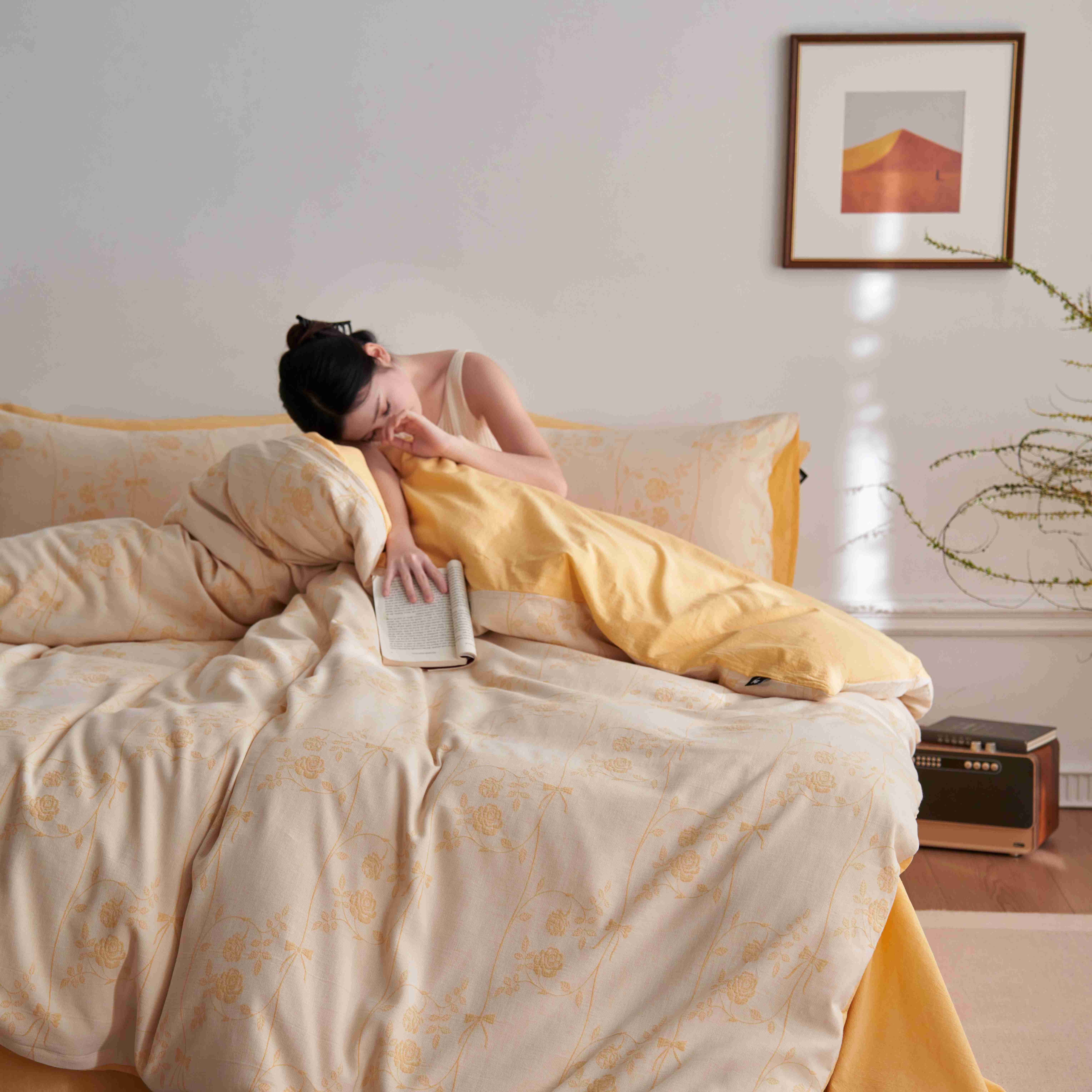 商品名称:安莱生活 2025新款60s双层纱色织大提花枝上玫瑰四件套系列 枝上玫瑰-嫩黄