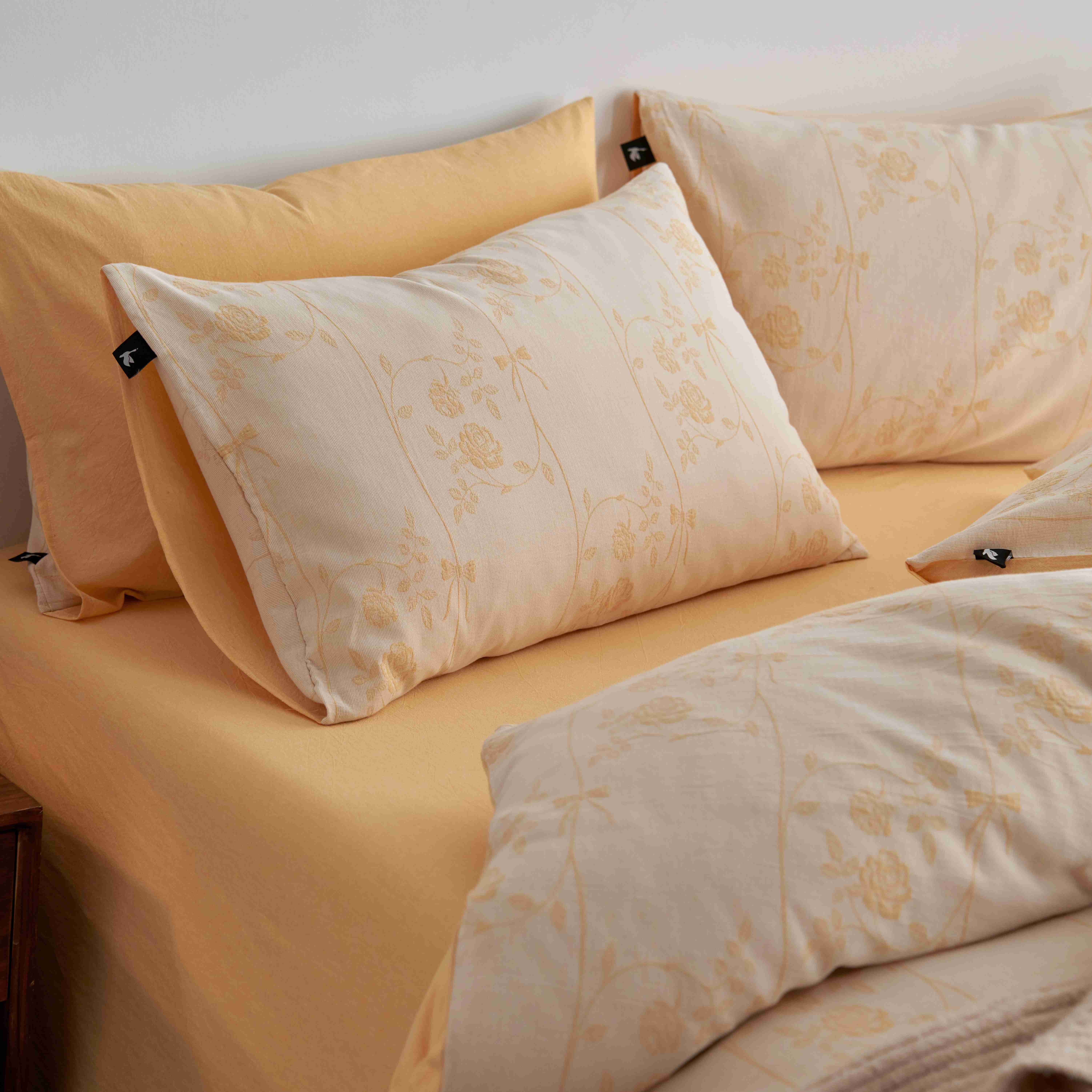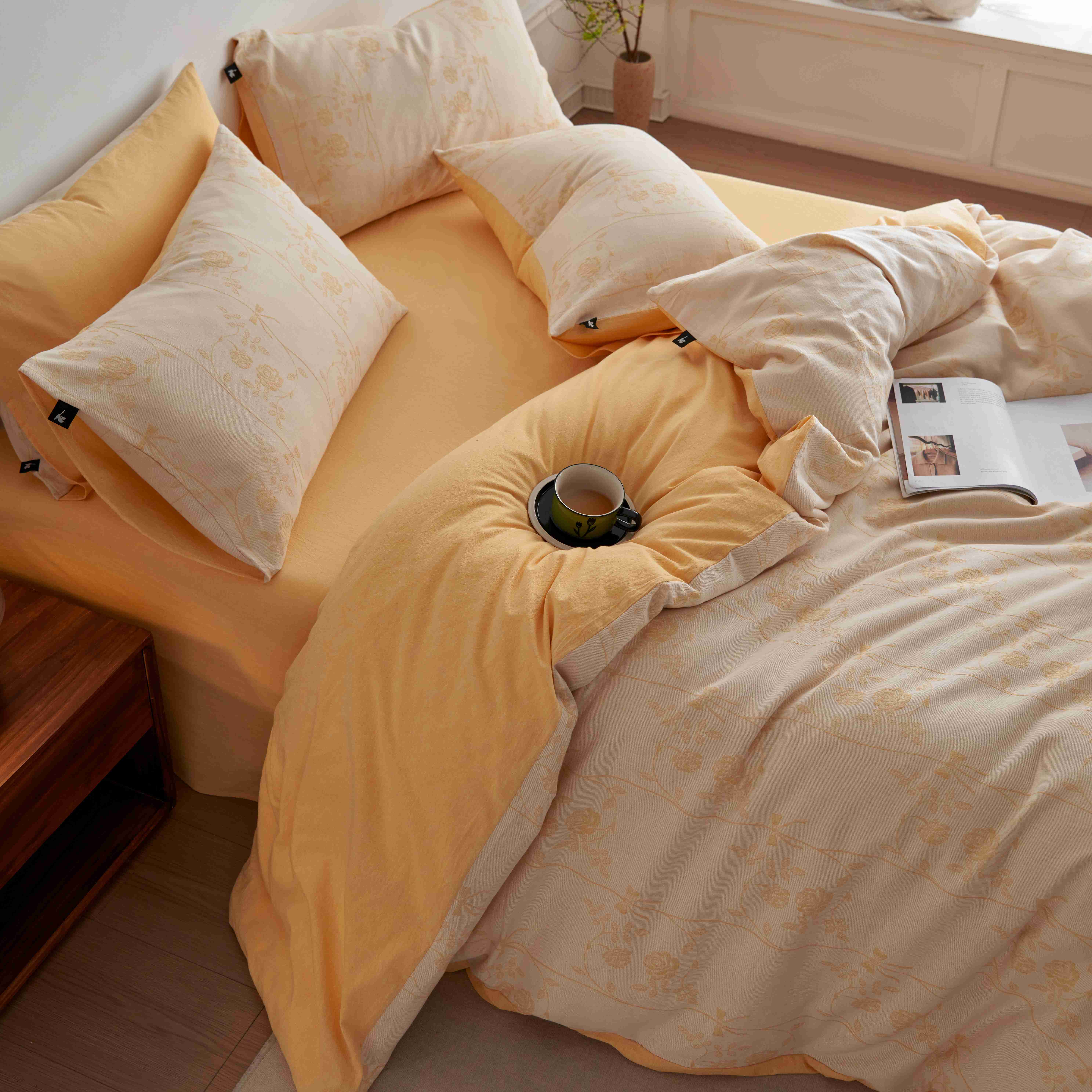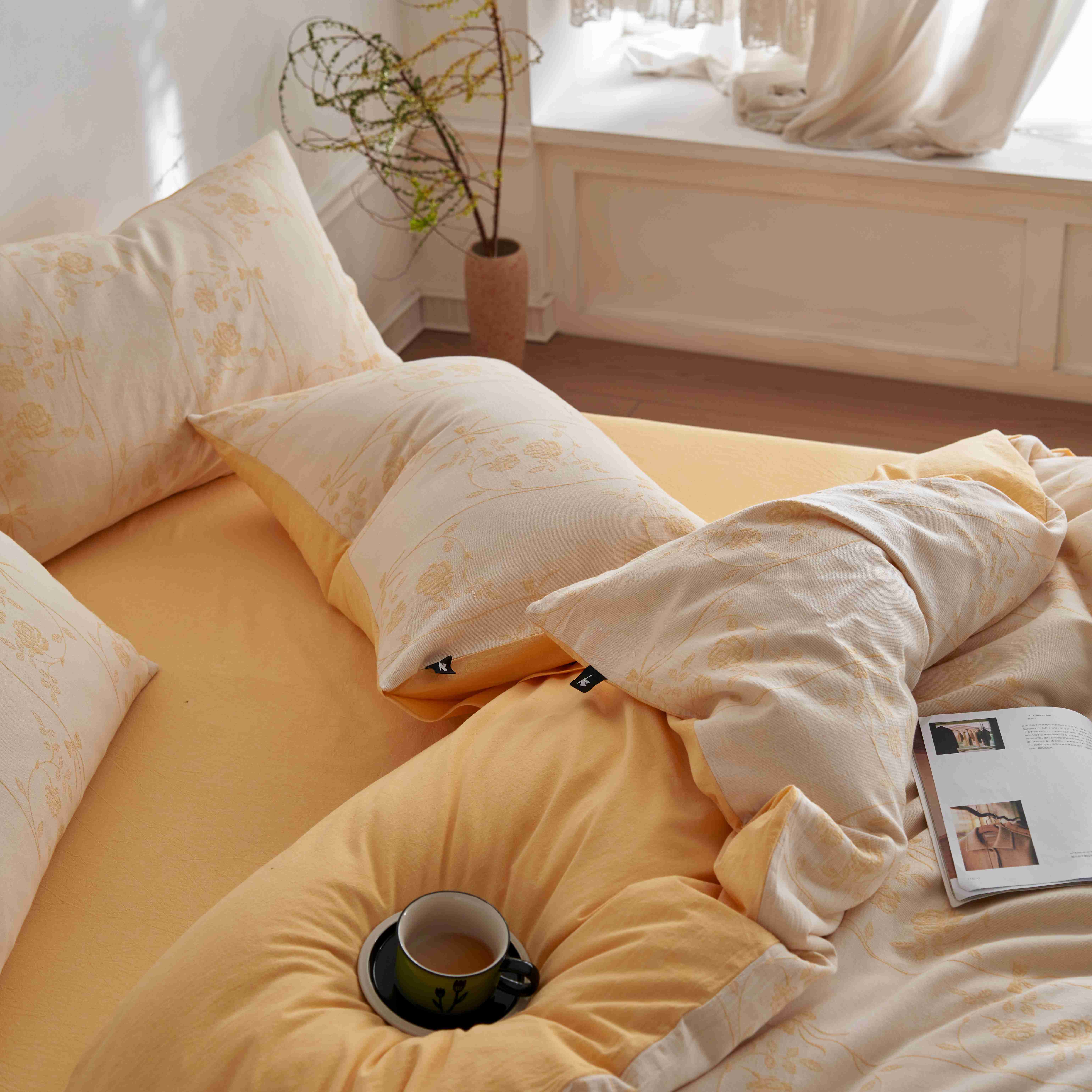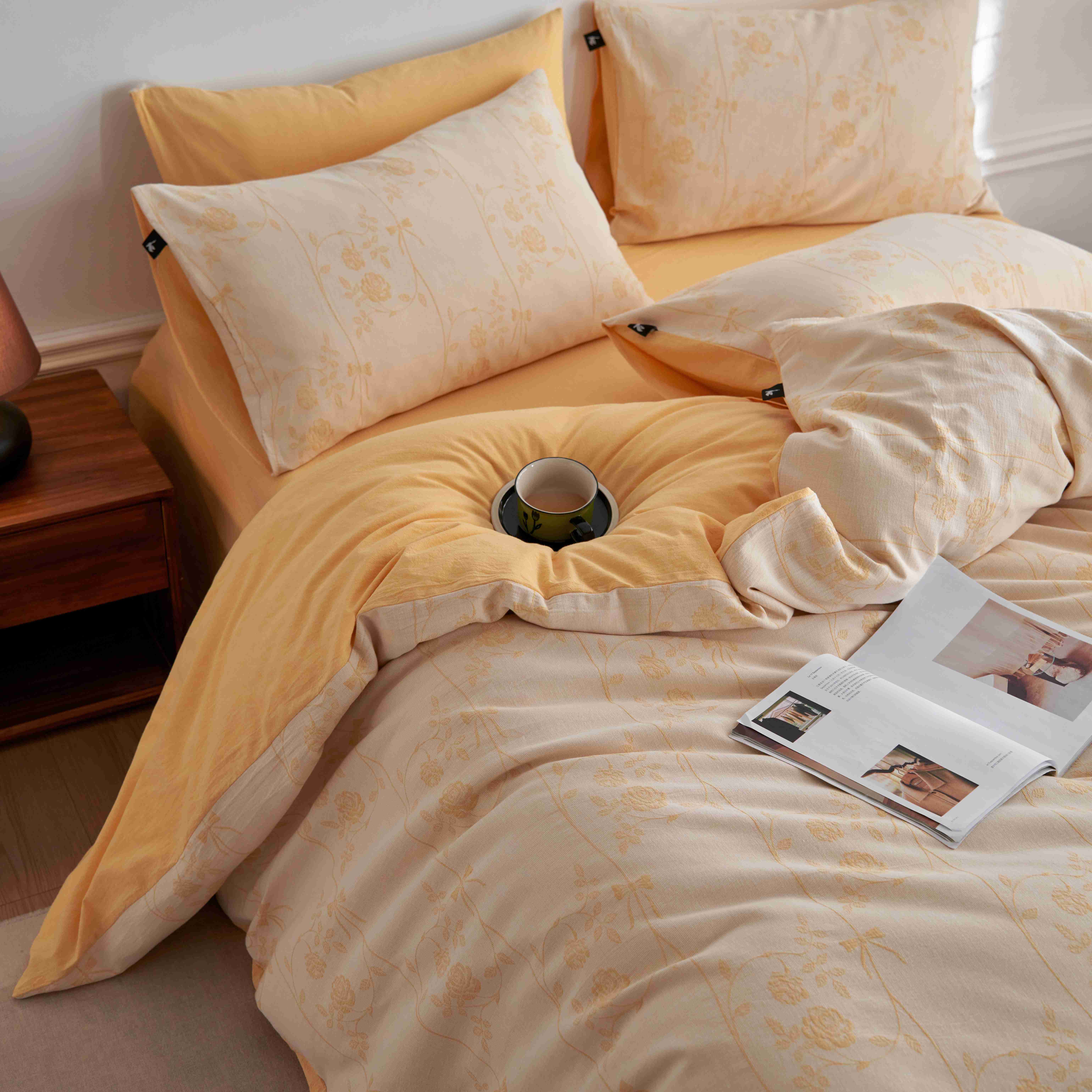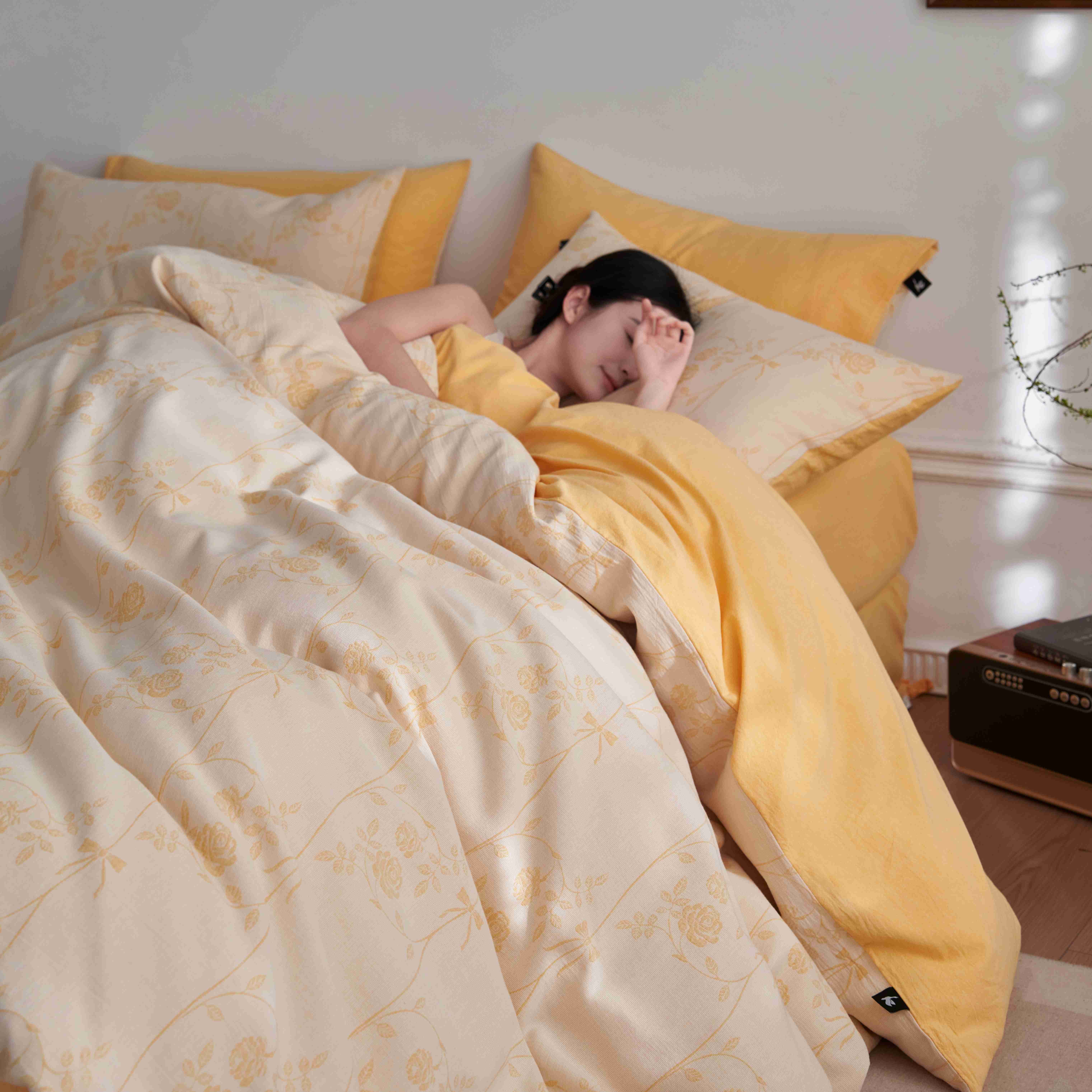 商品名称:安莱生活 2025新款60s双层纱色织大提花枝上玫瑰四件套系列 枝上玫瑰-嫩黄