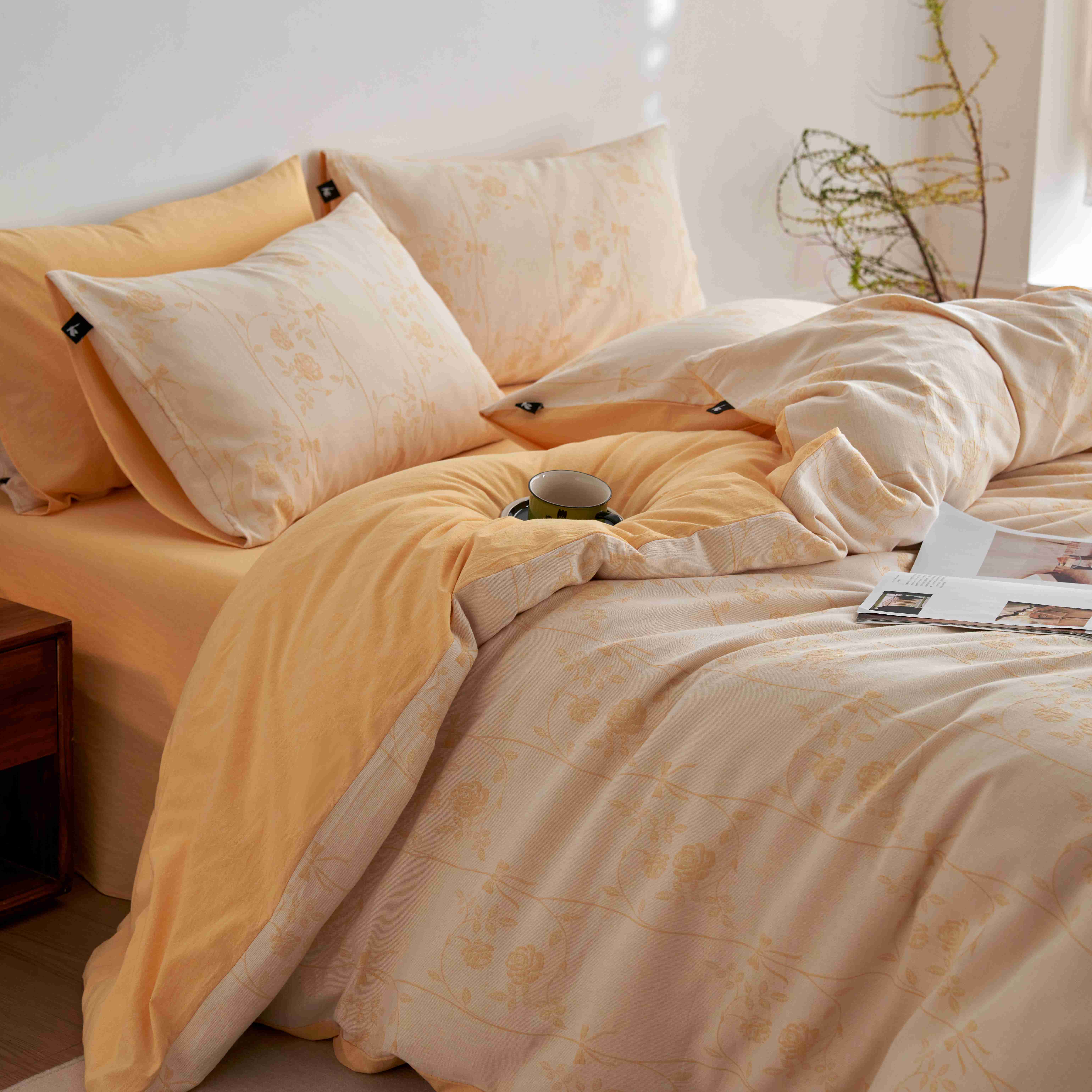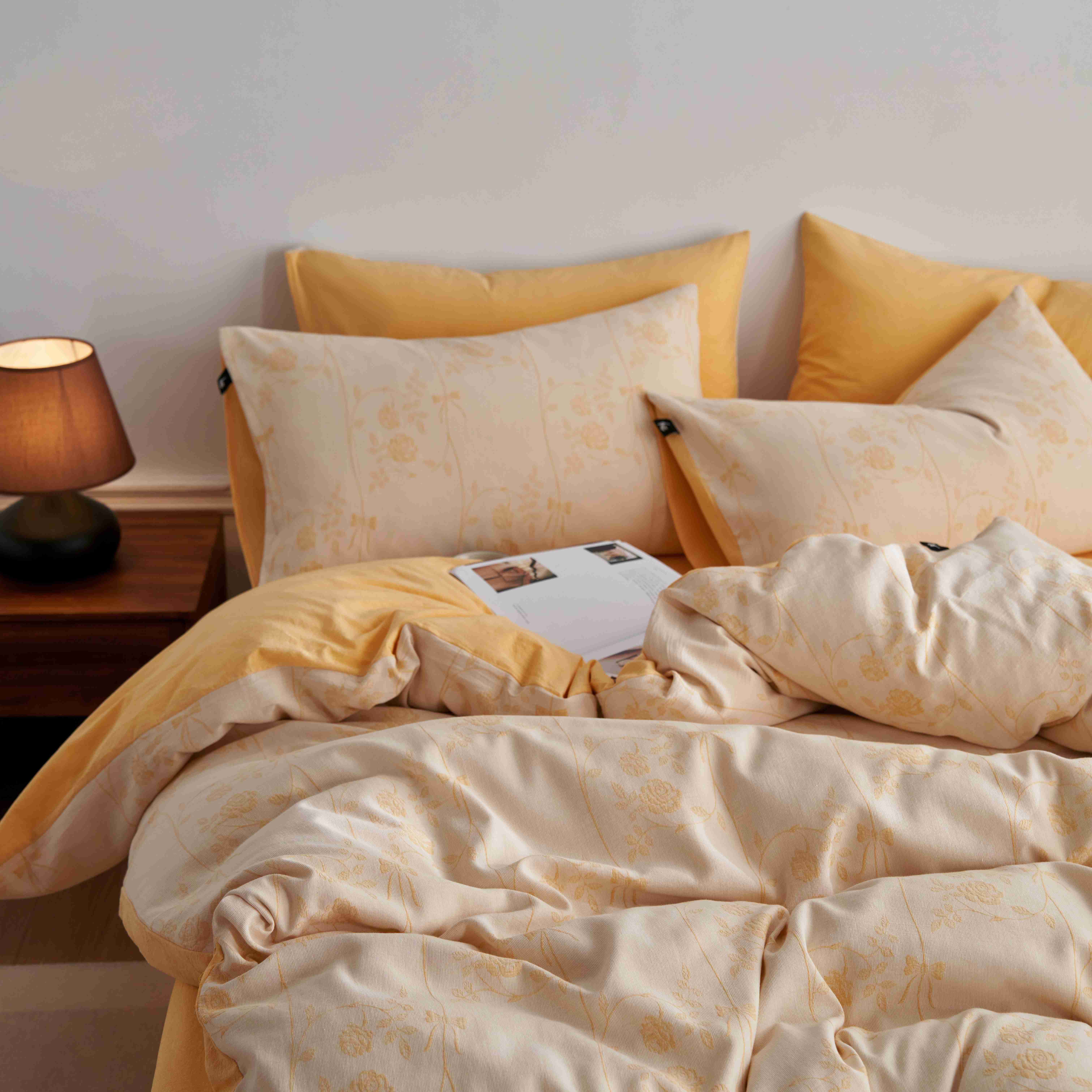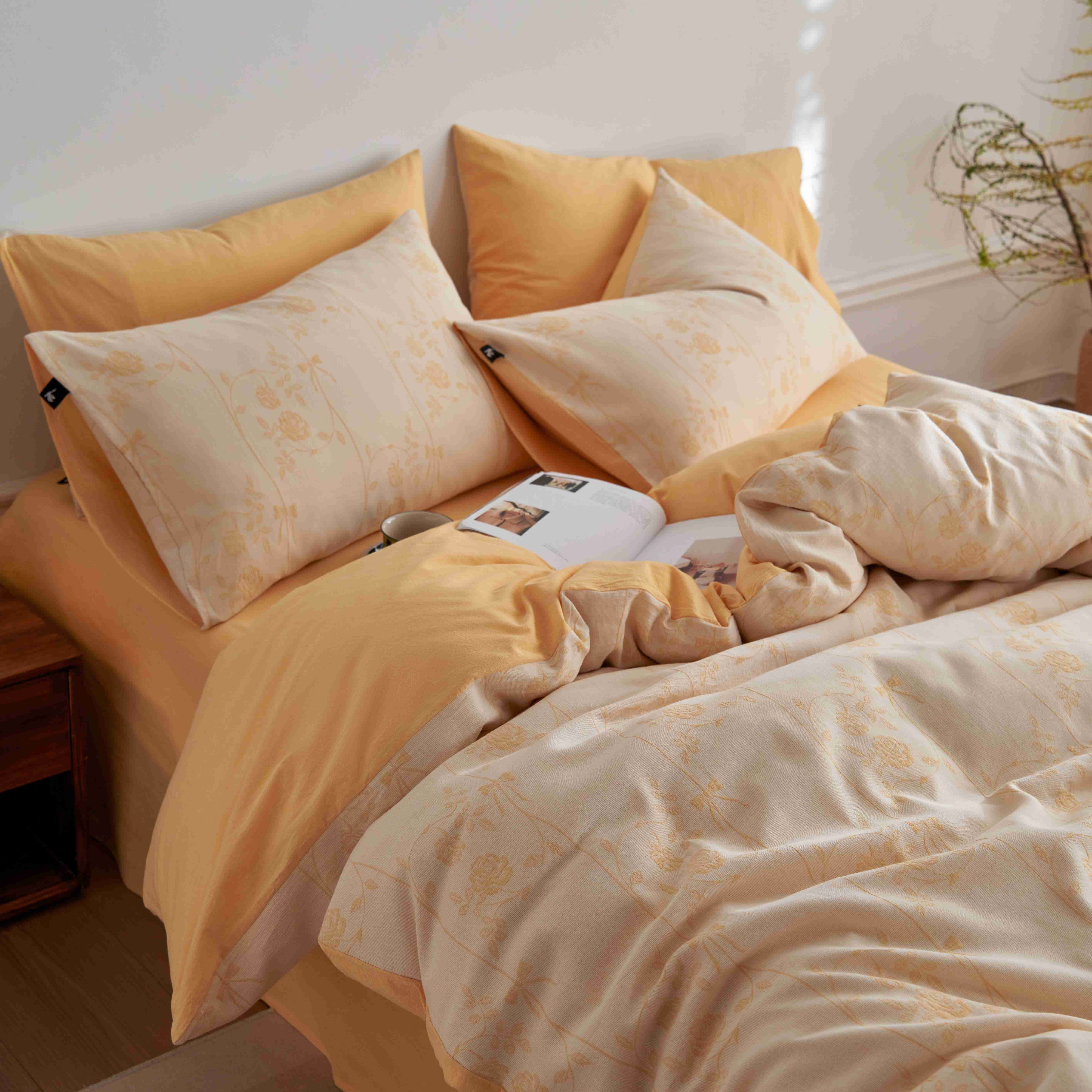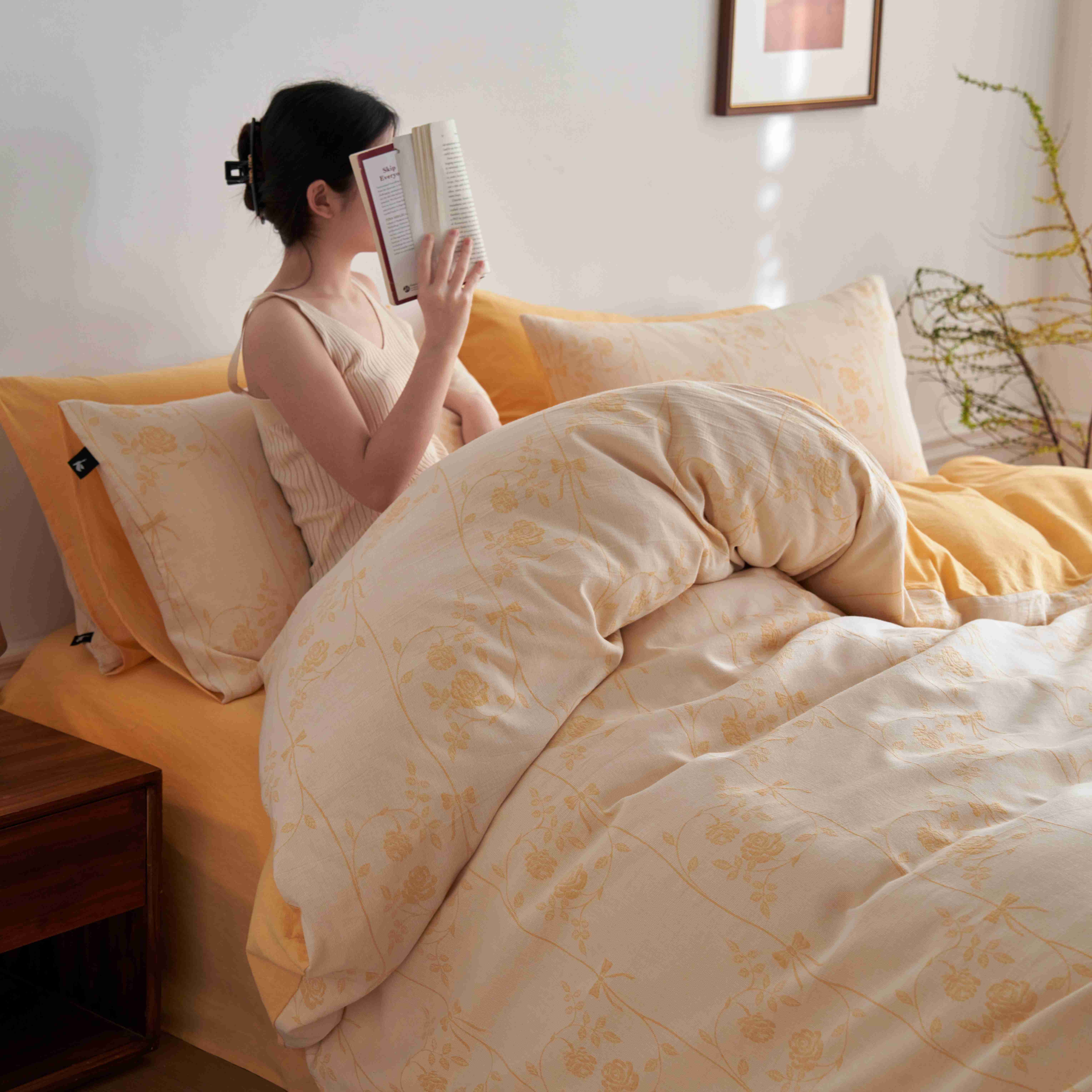 商品名称:安莱生活 2025新款60s双层纱色织大提花枝上玫瑰四件套系列 枝上玫瑰-嫩黄