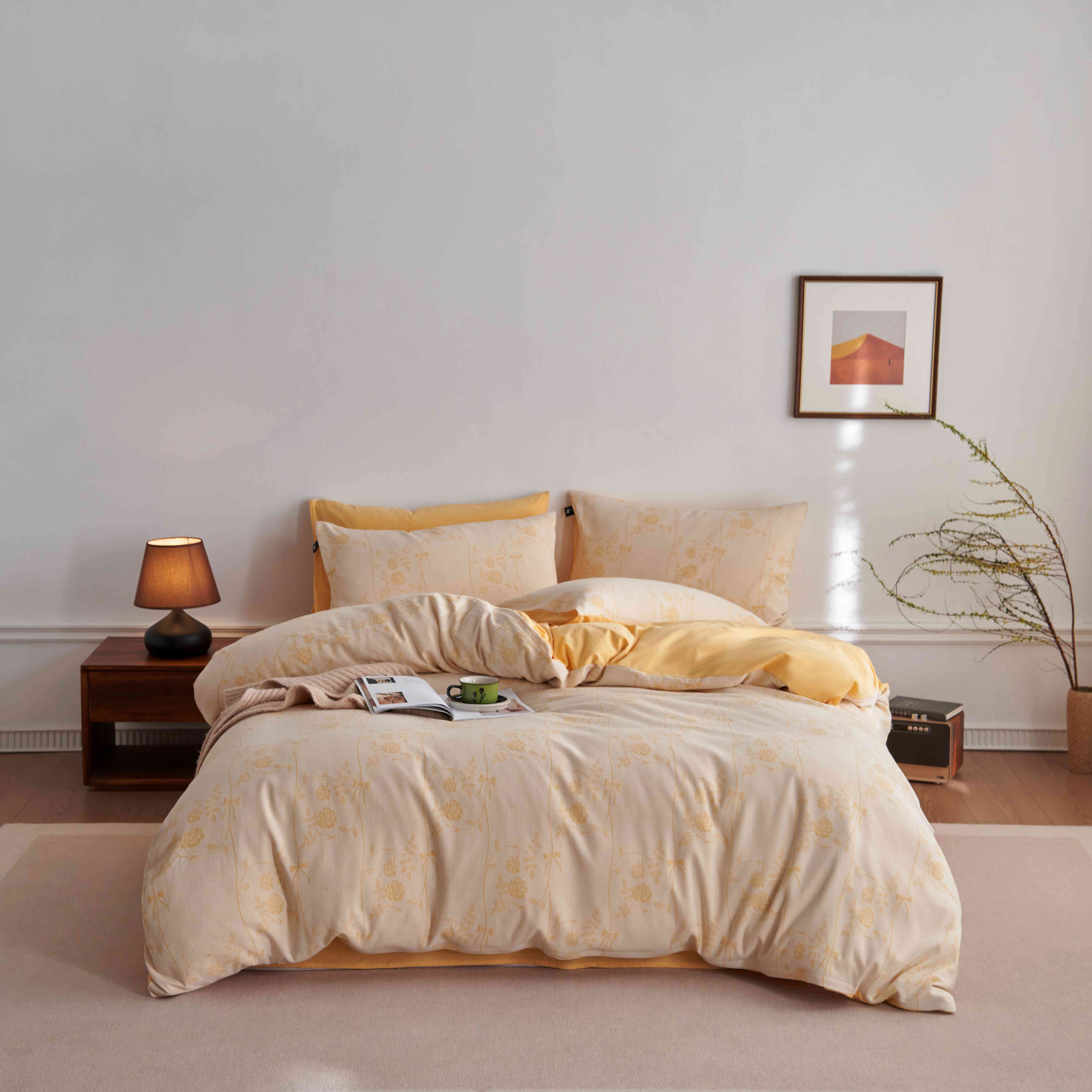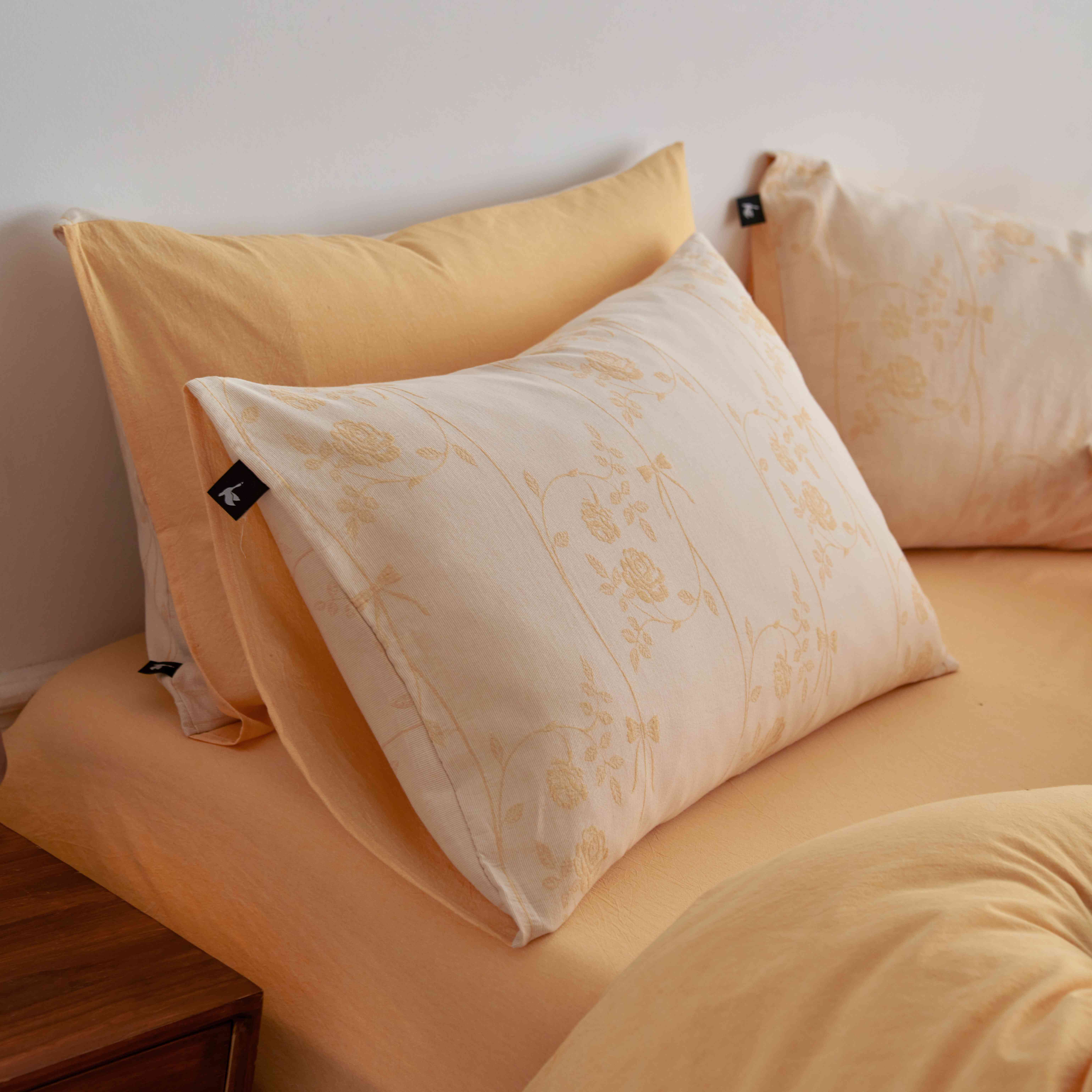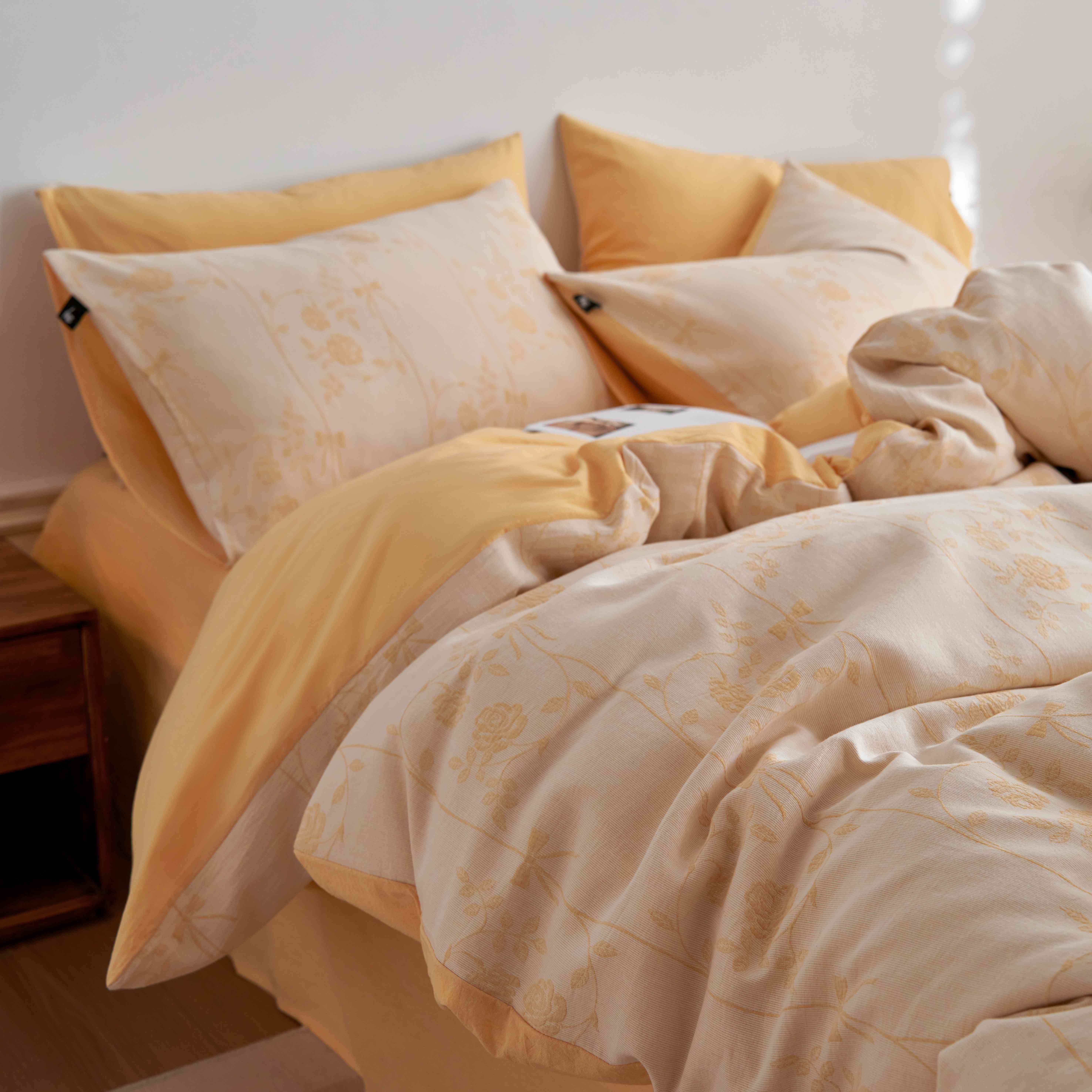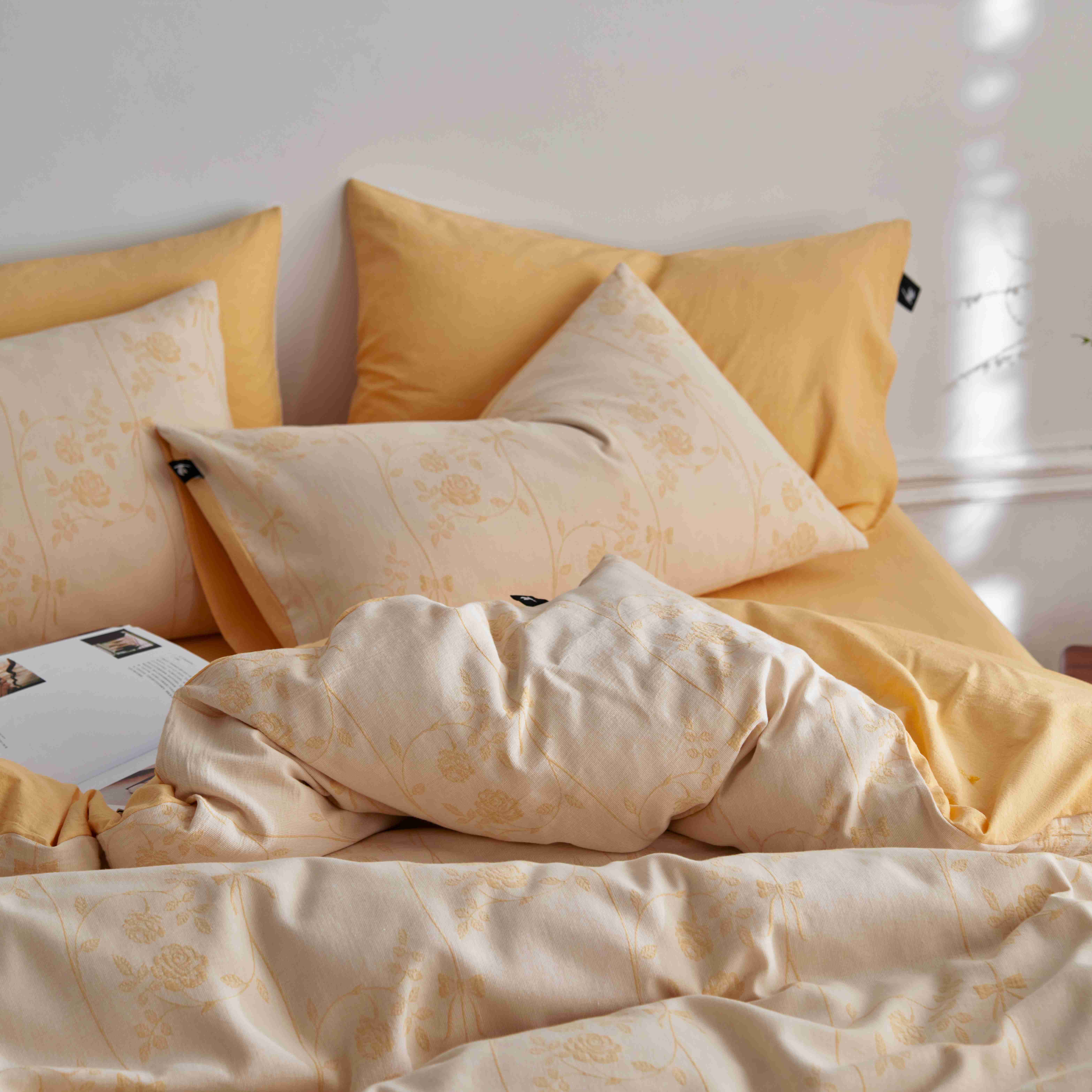 商品名称:安莱生活 2025新款60s双层纱色织大提花枝上玫瑰四件套系列 枝上玫瑰-嫩黄