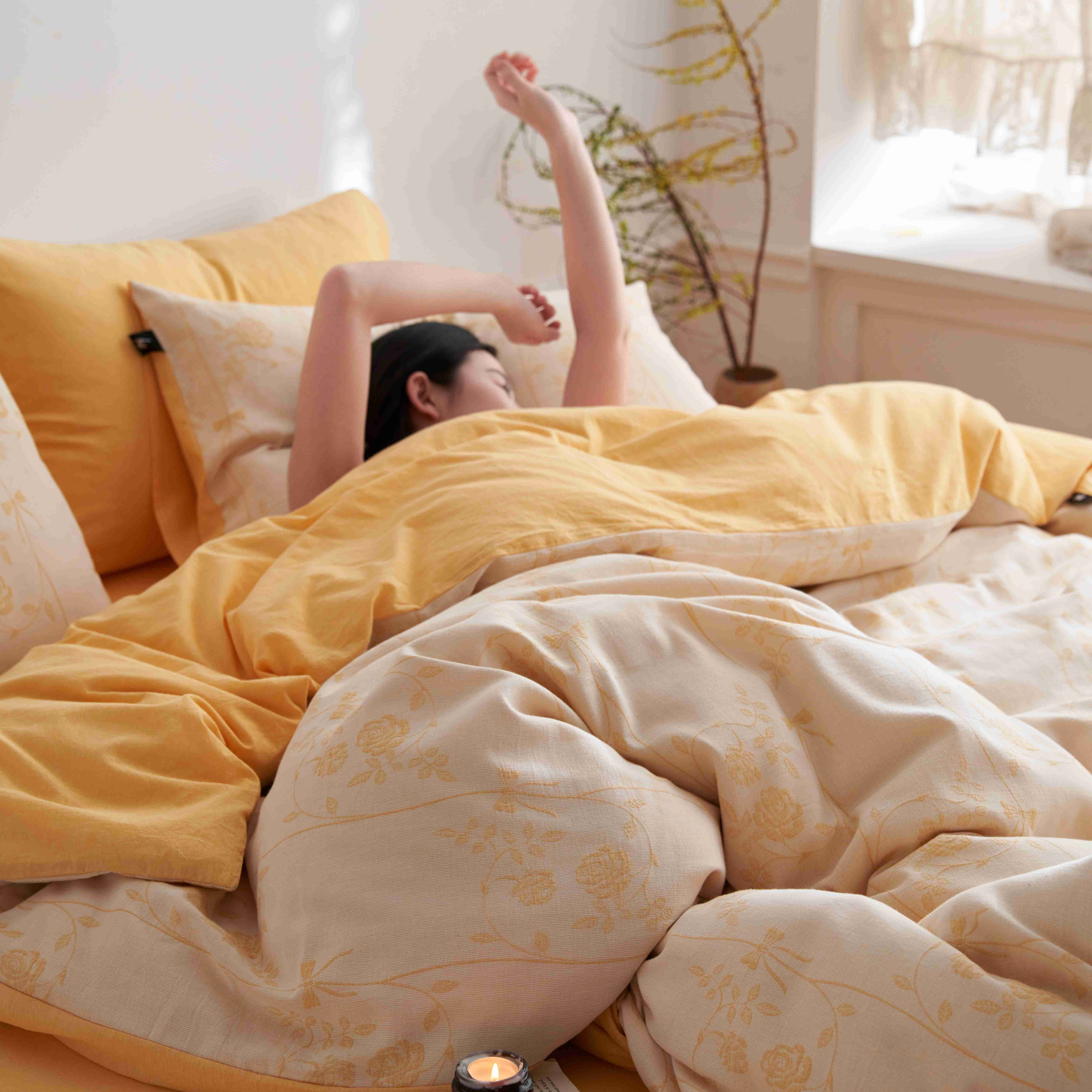 安莱生活 2025新款60s双层纱色织大提花枝上玫瑰四件套系列 枝上玫瑰-嫩黄