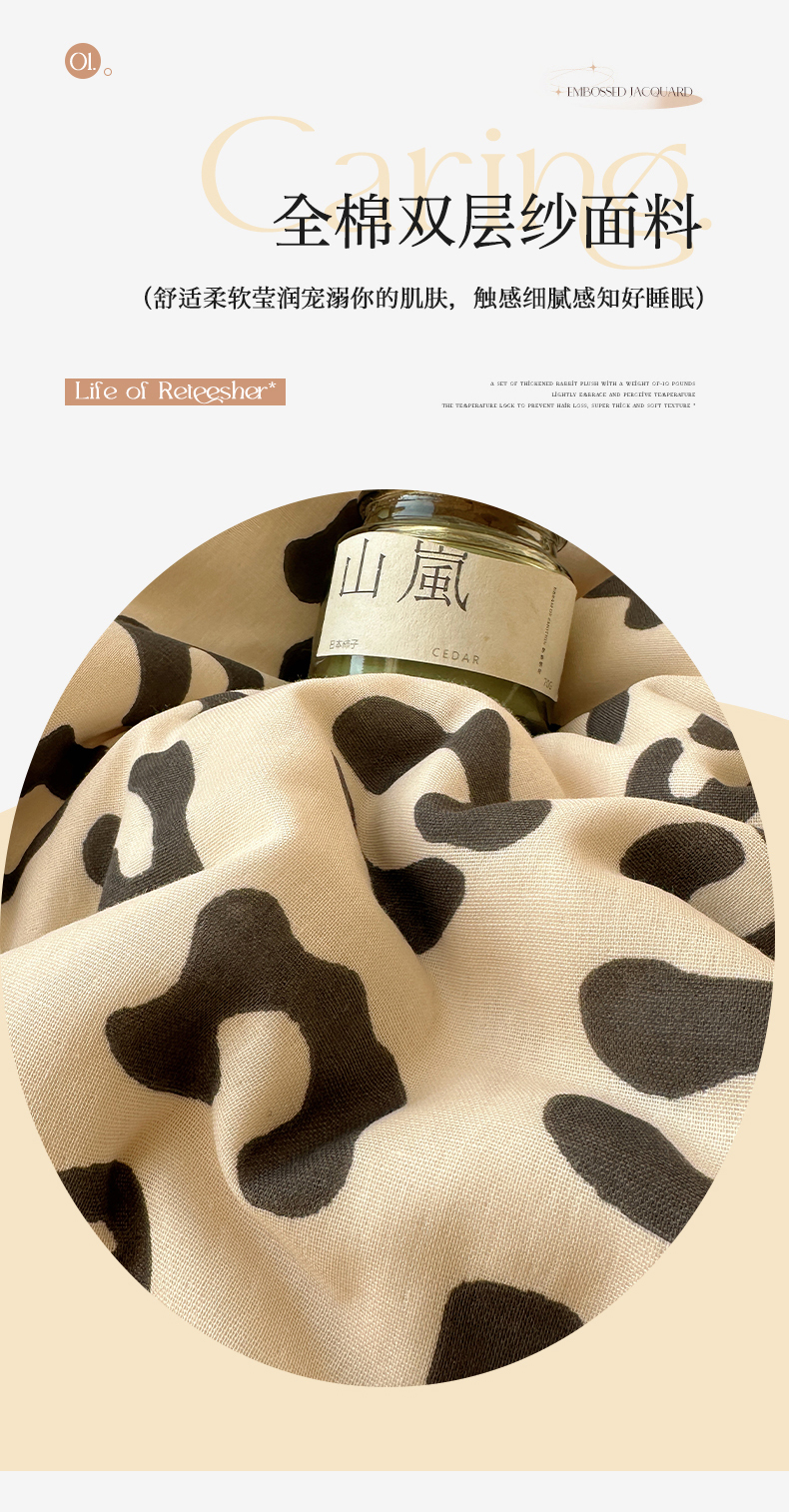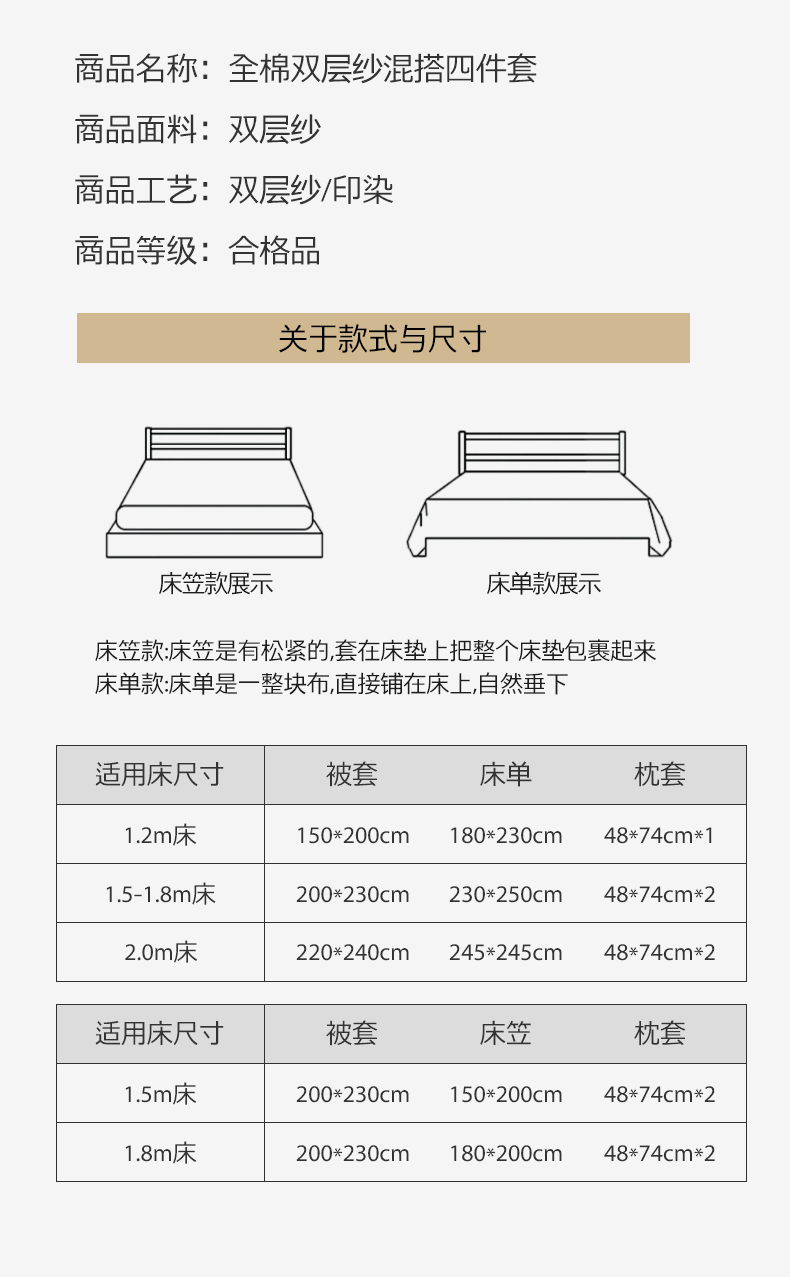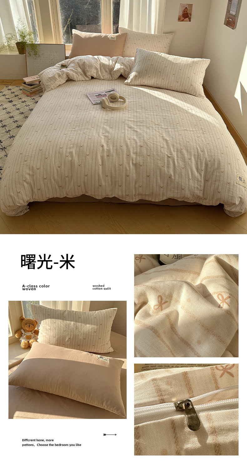 商品名称:(总)三朵家纺 2025新款全棉双层纱混搭四件套