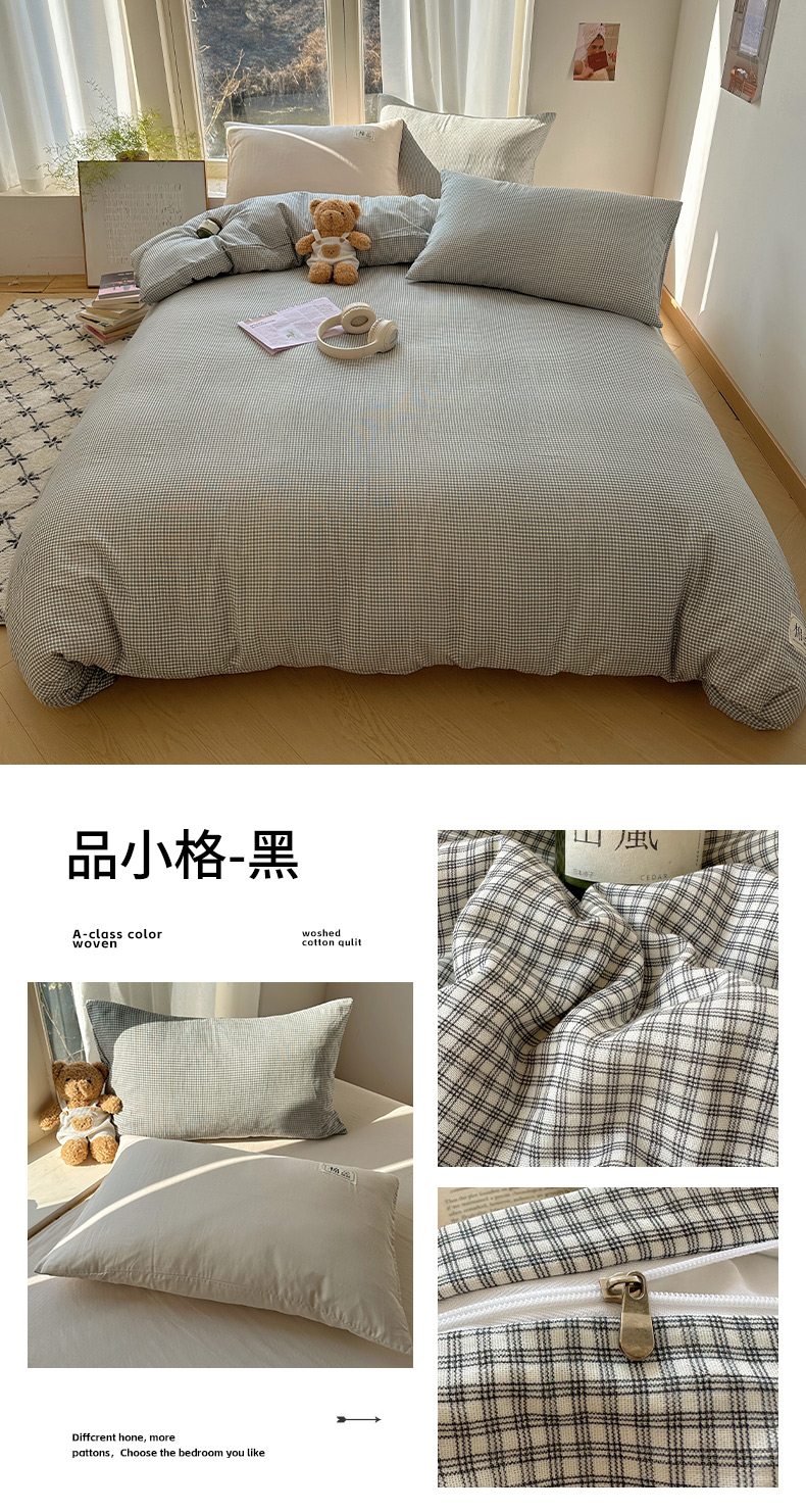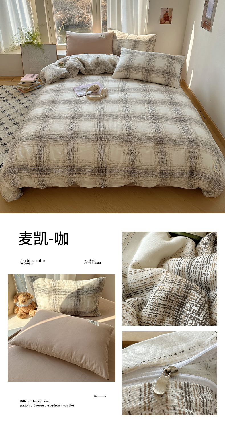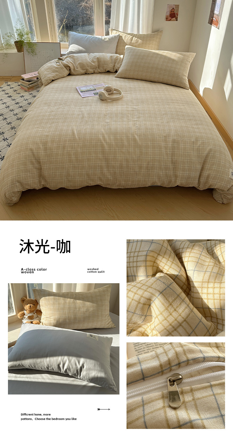 (总)三朵家纺 2026新款ins风全棉纯色双拼水洗棉四件套极简风系列,风青月白,焦糖曲奇,蓝韵雾纱,流光奶绿,抹茶奶黄,浅蓝芝士,香芋奶昔,烟墨灰,云纱可可