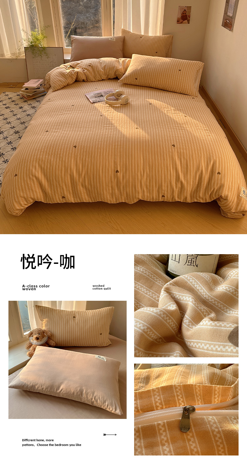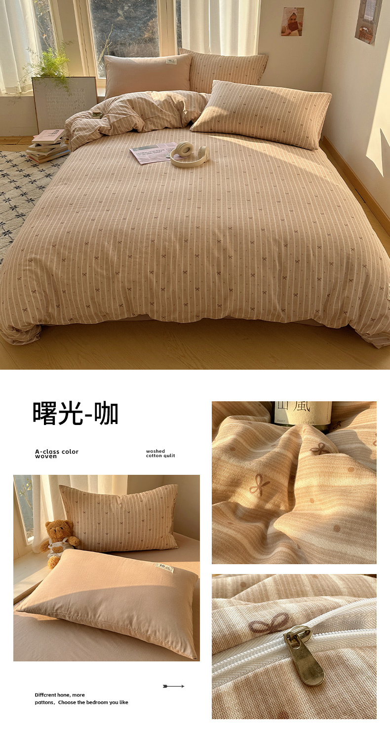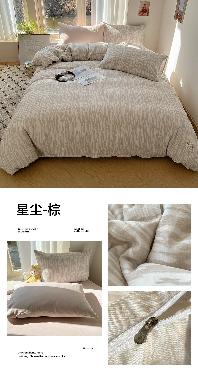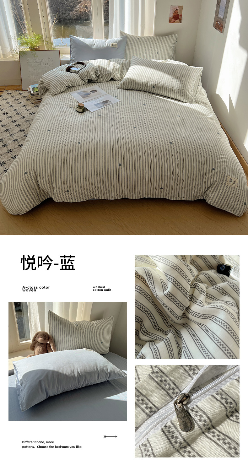 (总)三朵家纺 2026新款ins风全棉纯色双拼水洗棉四件套极简风系列,风青月白,焦糖曲奇,蓝韵雾纱,流光奶绿,抹茶奶黄,浅蓝芝士,香芋奶昔,烟墨灰,云纱可可