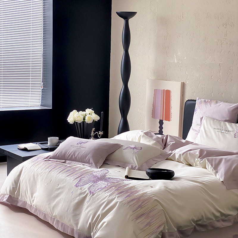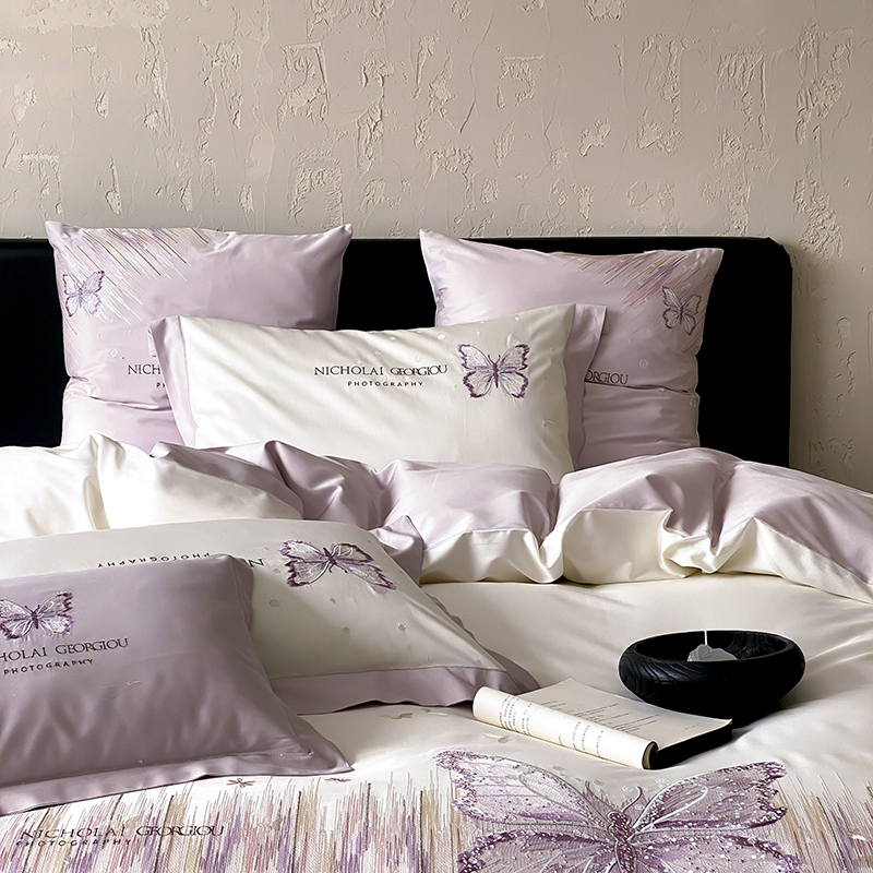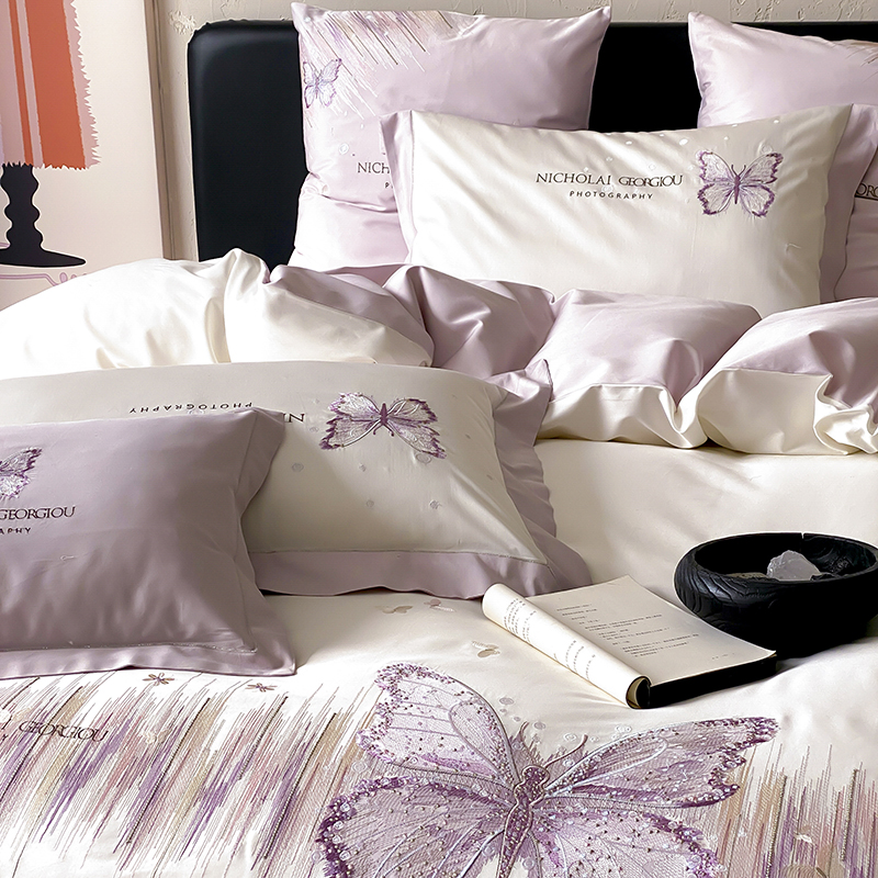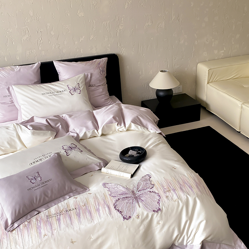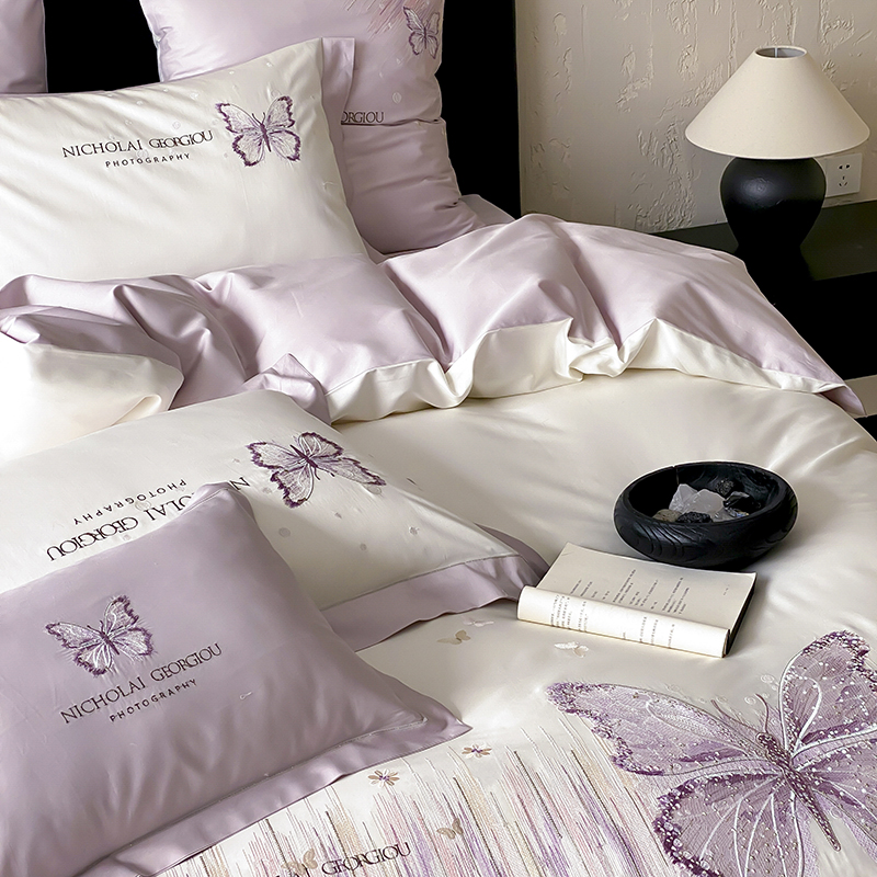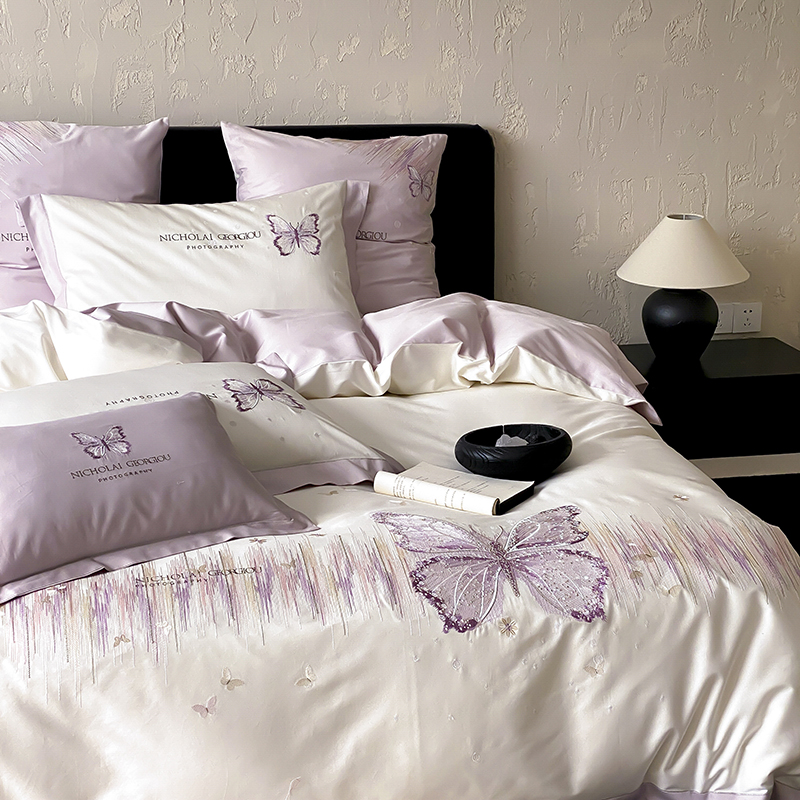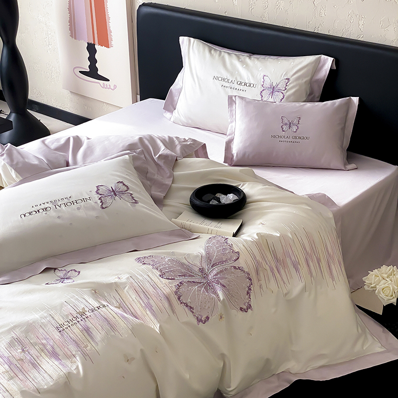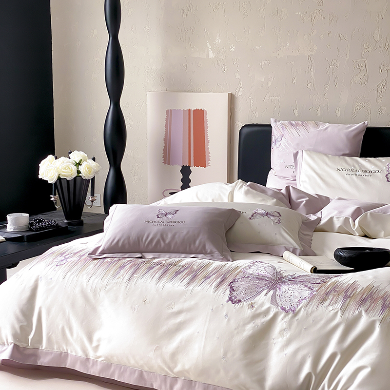 (总)星野 2025春夏新品澳棉贴布绣蝴蝶四件套-星蝶