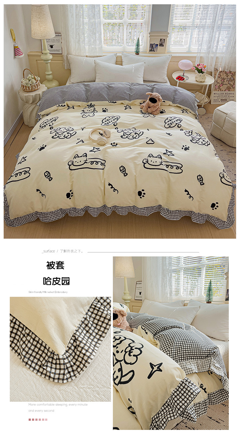 商品名称:忆生活家纺 2025新款韩版全棉花边款-单被套系列 哈皮园