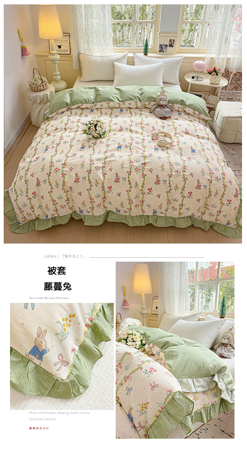 忆生活家纺 2025新款韩版全棉花边款-单被套系列 藤蔓兔