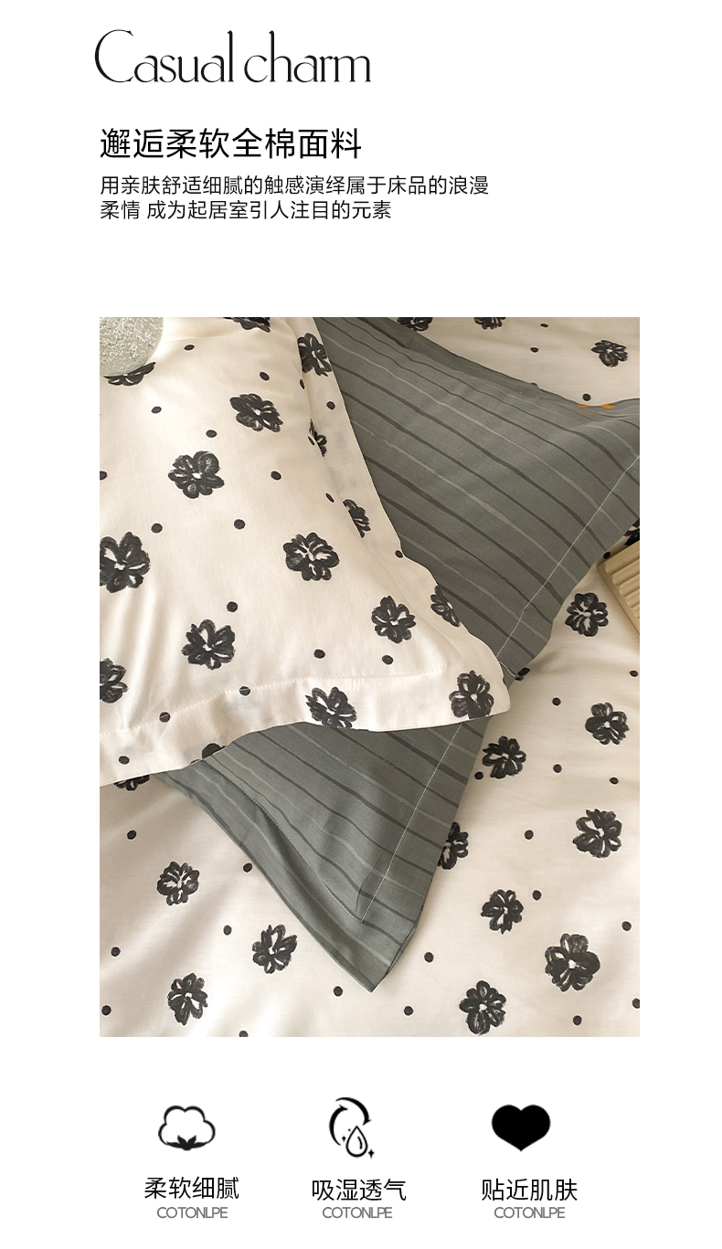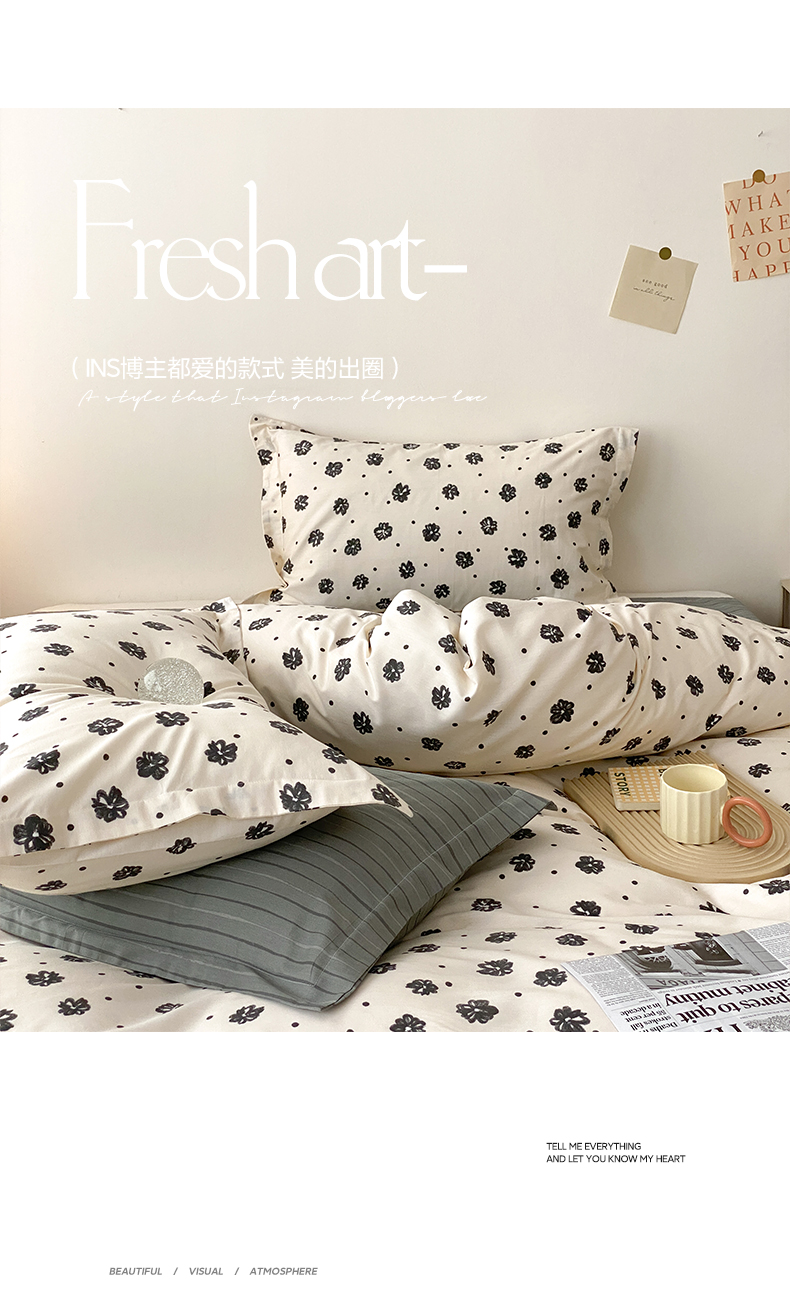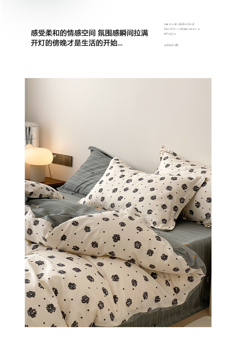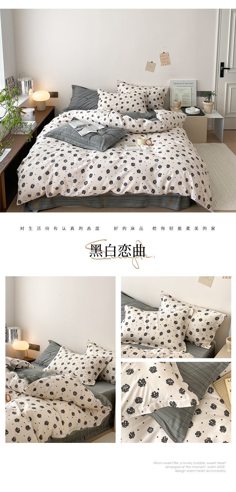 宜家坊 2025开春新品全棉喷气13070小清新印花纯棉全棉四件套-风格一 黑白恋曲