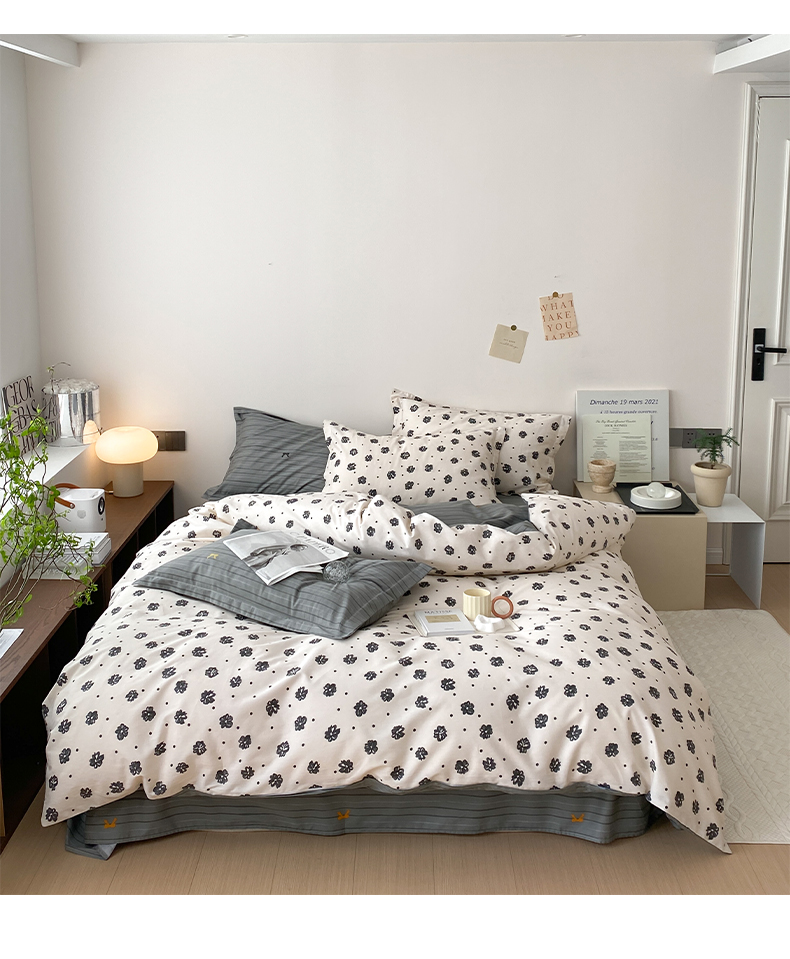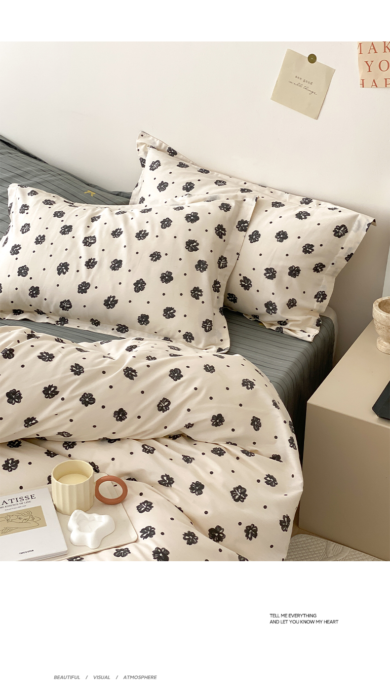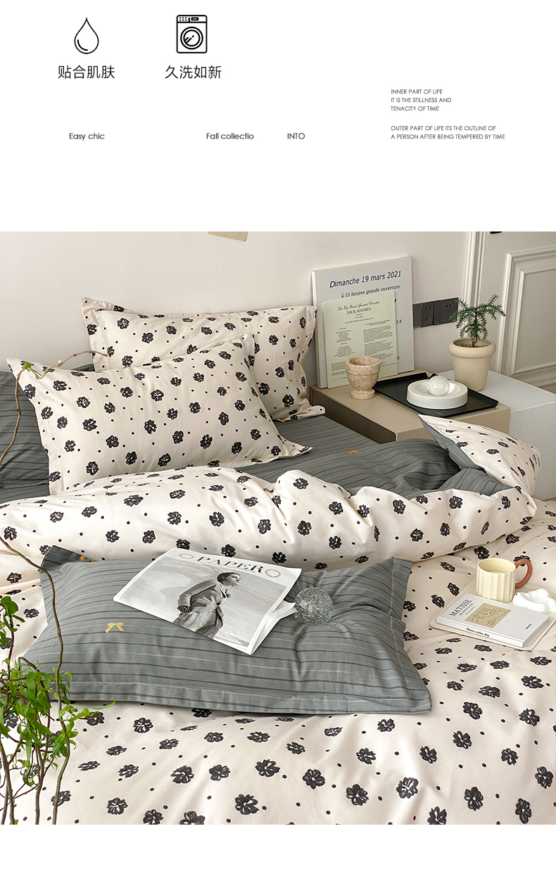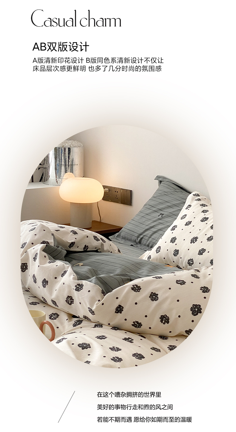 宜家坊 2025开春新品全棉喷气13070小清新印花纯棉全棉四件套-风格一 黑白恋曲