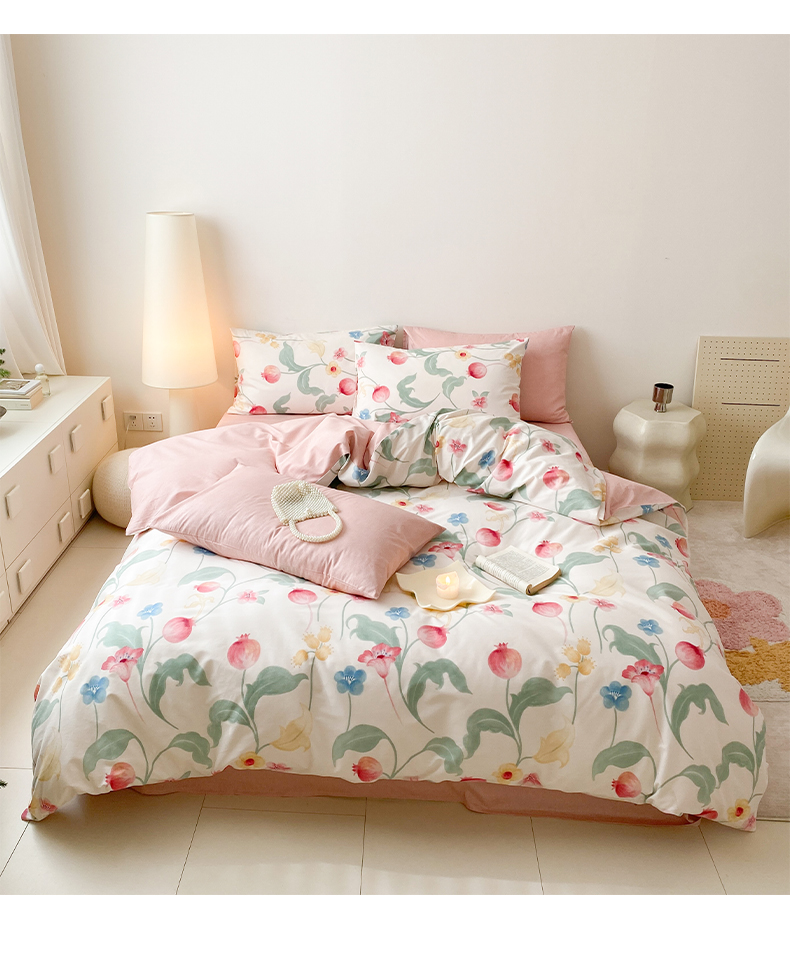 商品名称:宜家坊 2025开春新品全棉喷气13070小清新印花纯棉全棉四件套-风格一 时留