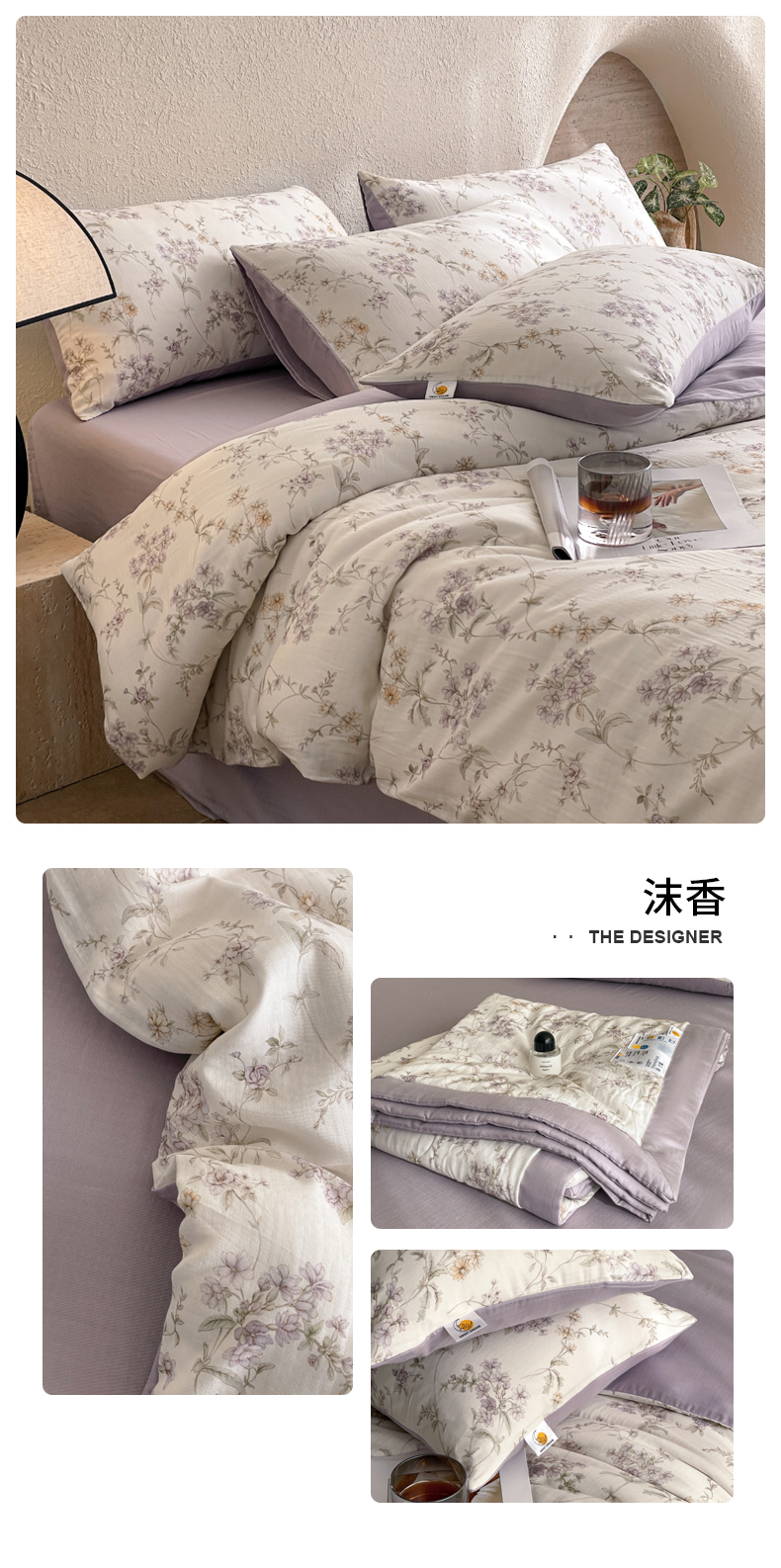 商品名称:慕晨 2025新款全棉双层纱四件套莱赛尔夏被莱赛尔夏被四件套天丝夏凉被直播 沫香