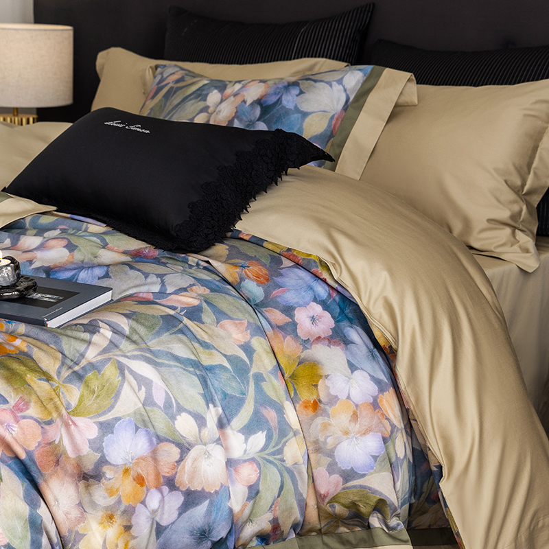 涞澳家纺 2025新款全棉数码印花宽边四件套 梦秋