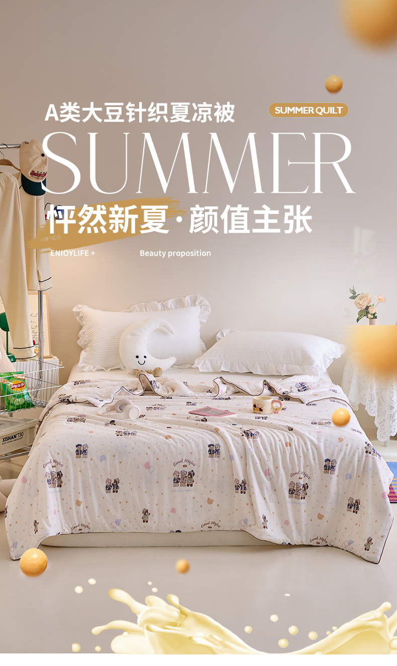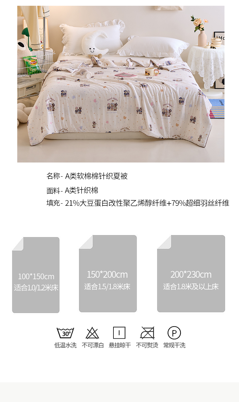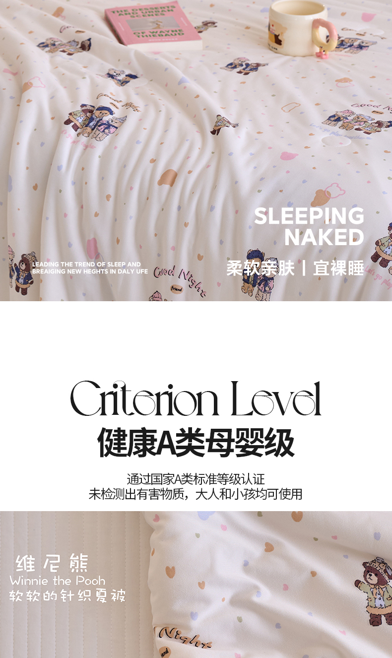 商品名称:维洋家纺 2025升级21%大豆新款A类牛奶丝针织夏被(四周踩棉)软糯凉感夏被空调被 维尼熊