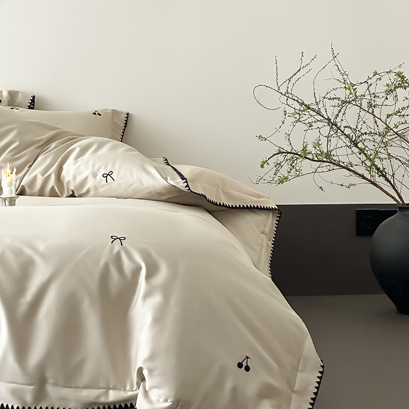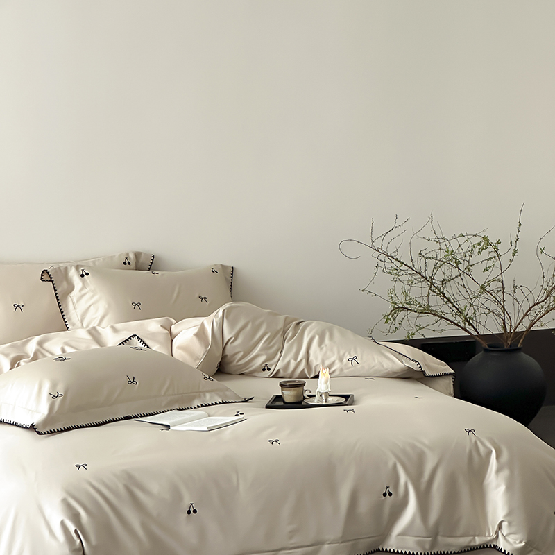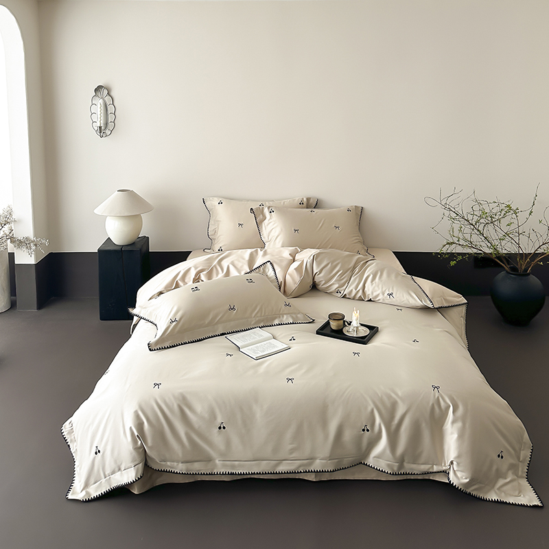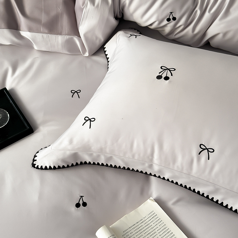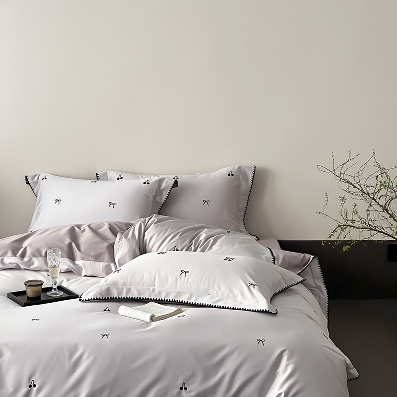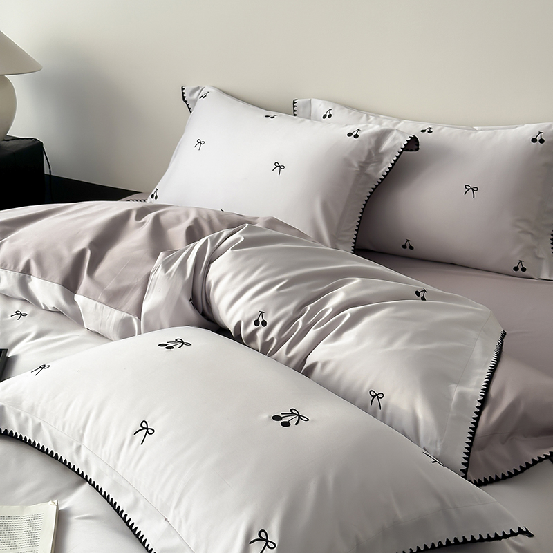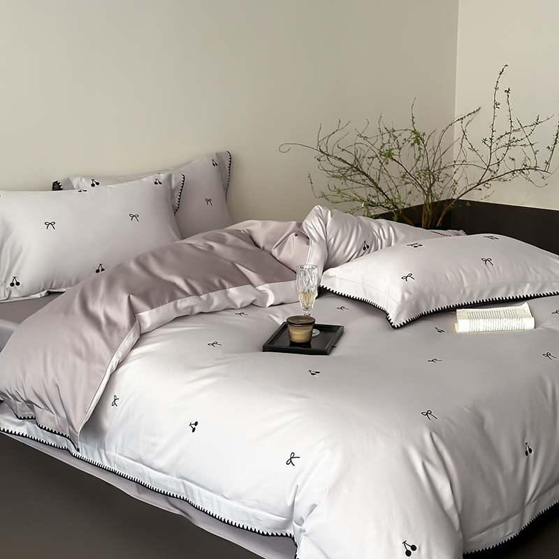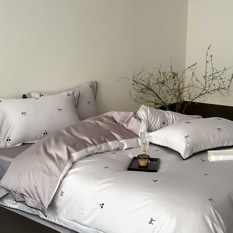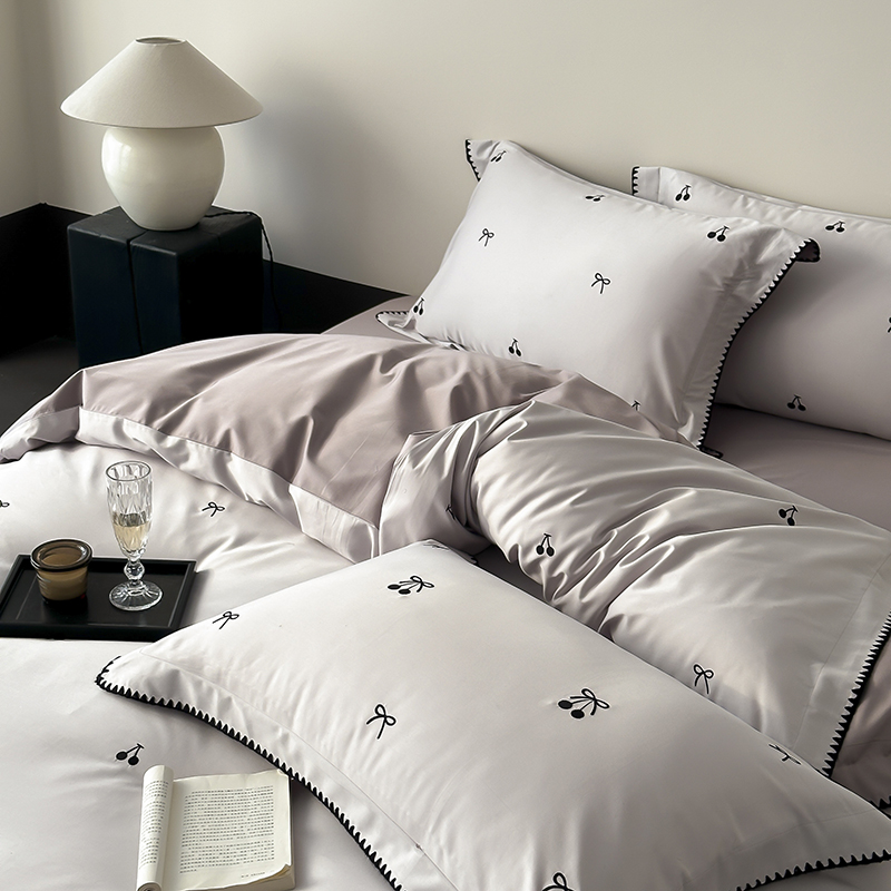 商品名称:时亿家居 2025新款100支长绒棉小清新四件套-黑樱梦境 黑樱梦境-灰