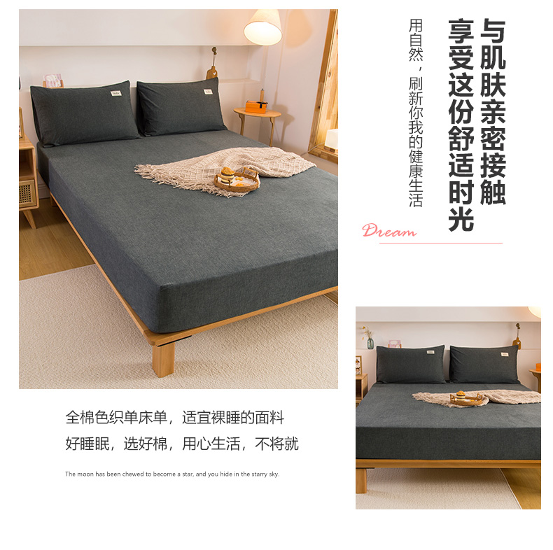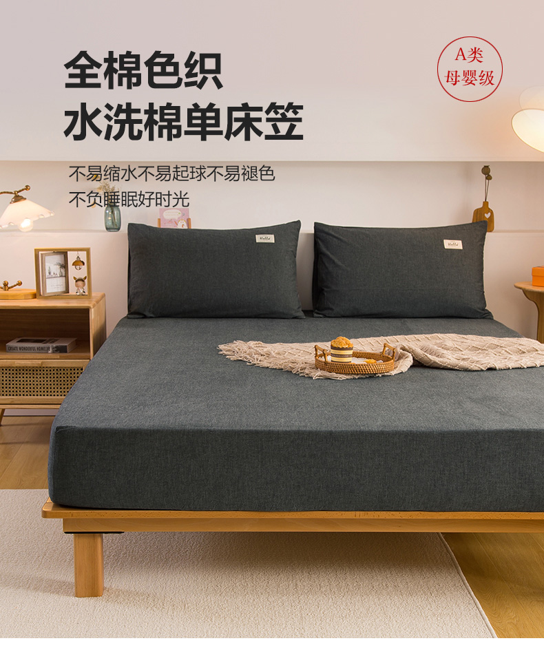 柠萌家居 2025新款A类全棉色织水洗棉单床笠 深灰