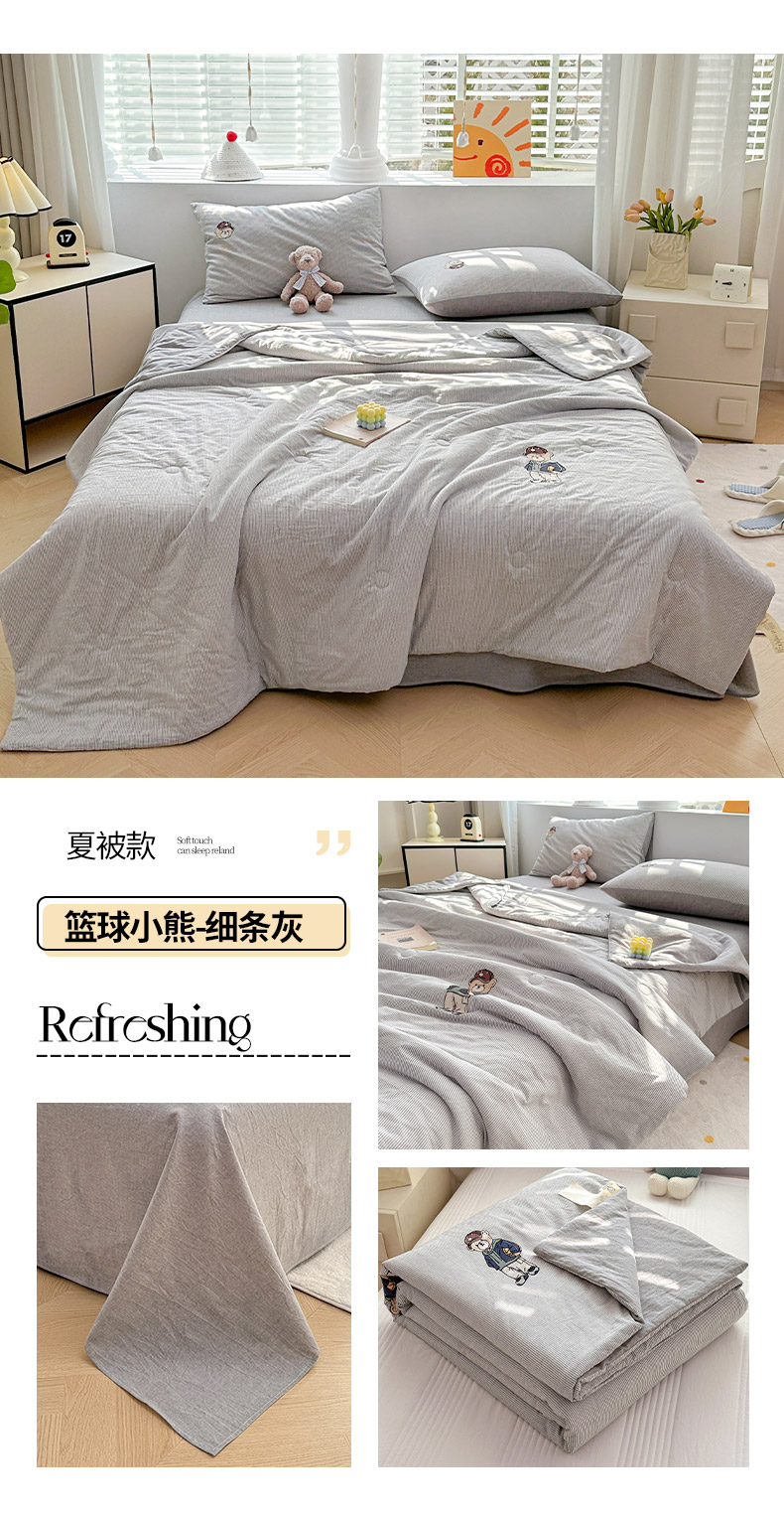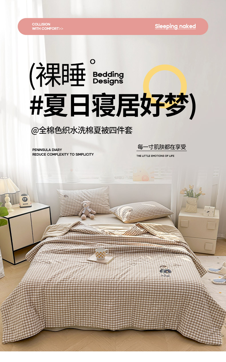 大境 2025新款专版纯棉色织水洗棉刺绣全棉夏被四件套 篮球小熊-格子咖