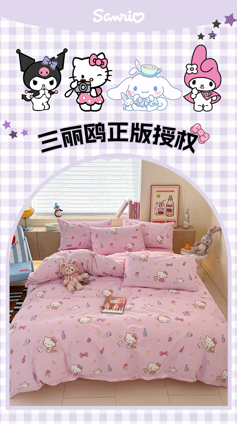 当前位置: 91家纺网 > 商品网购 > 床品套件 > 四件套 > 全棉普通四件套 > 博雅 2025新款三丽鸥卡通全棉印花小版四件套 小星星KT