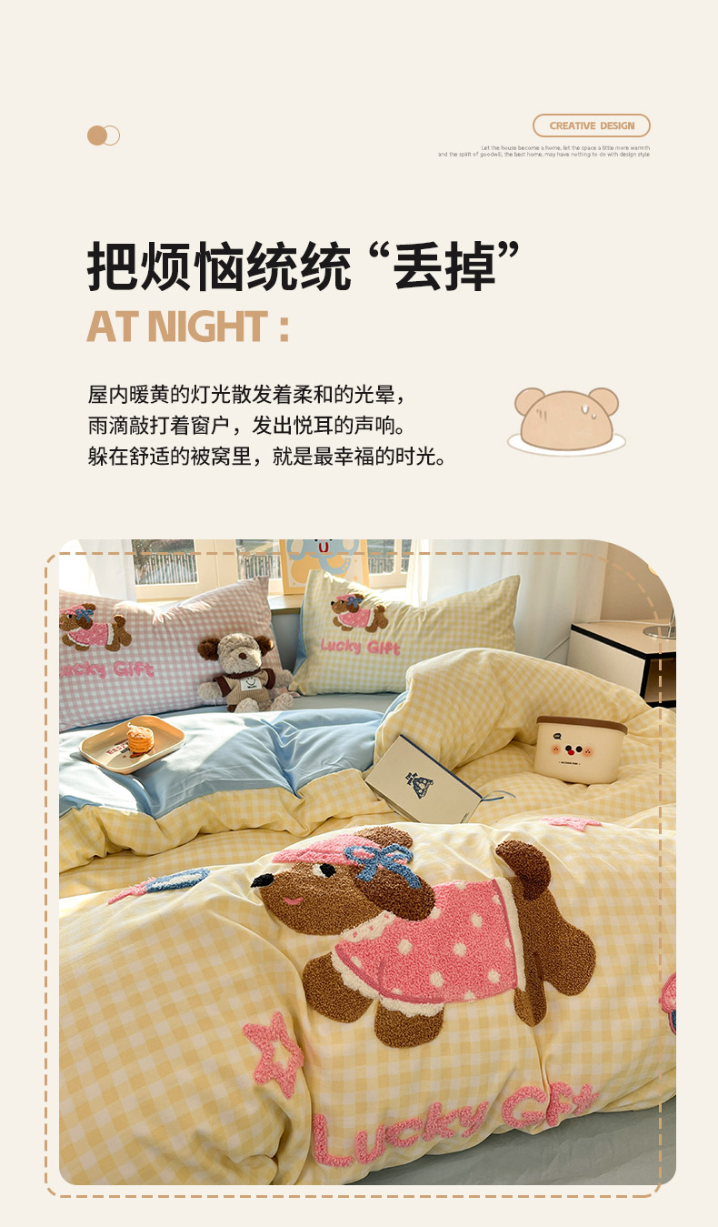 (总)乐坊 2025新款300g高克重兔绒卡通贴布绣牛奶绒四件套冬季加厚保暖,萌宠猫咪白粉,萌宠猫咪粉,可爱兔兔,快乐企鹅,美拉德狗狗,熊熊腊肠狗