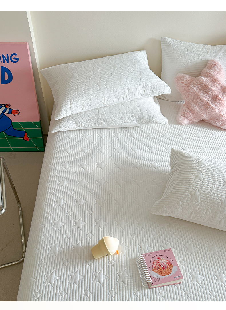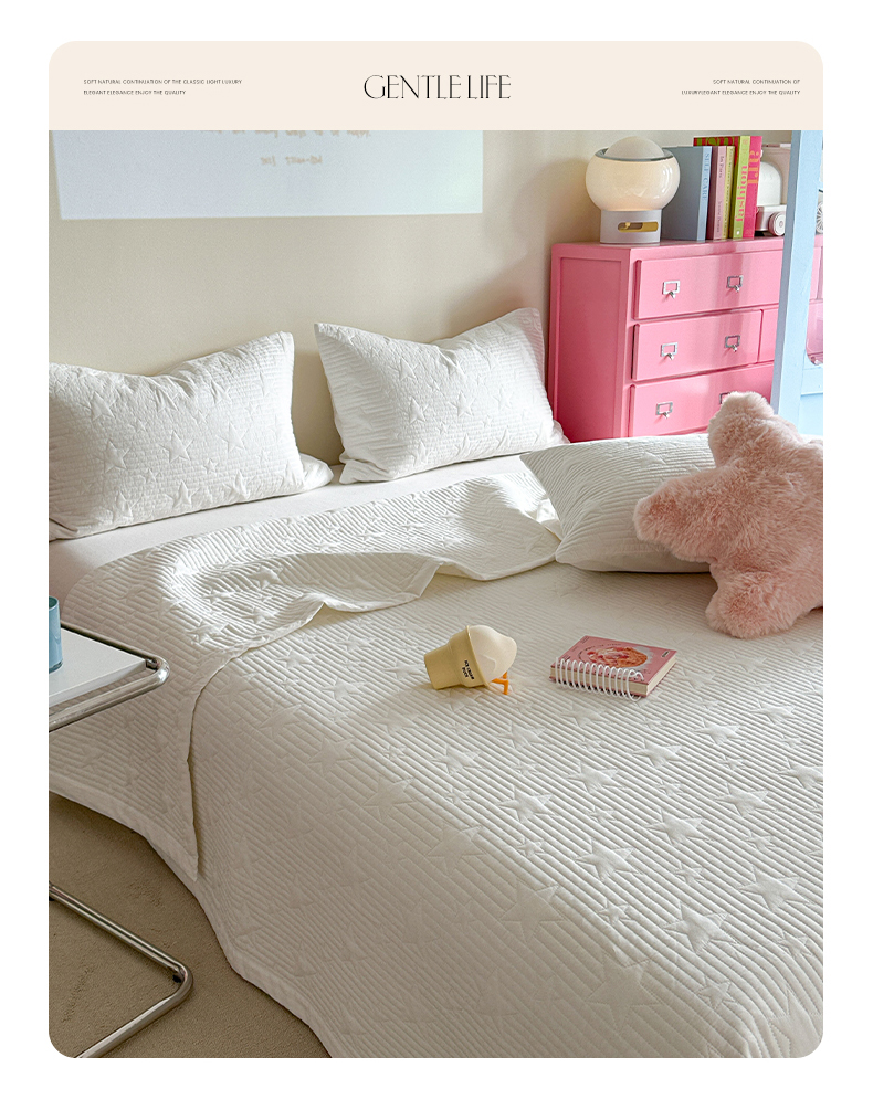 漫调2025新款双面全棉砂洗水洗星星绗缝床盖三件套多功能夏被 繁星白