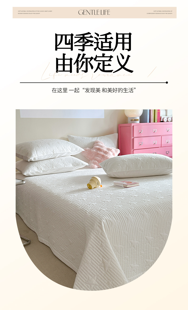(总)漫调家纺 2025新款繁星绗缝夏被 复古风实拍,繁星白,繁星粉,繁星灰,繁星咖,繁星绿,繁星杏