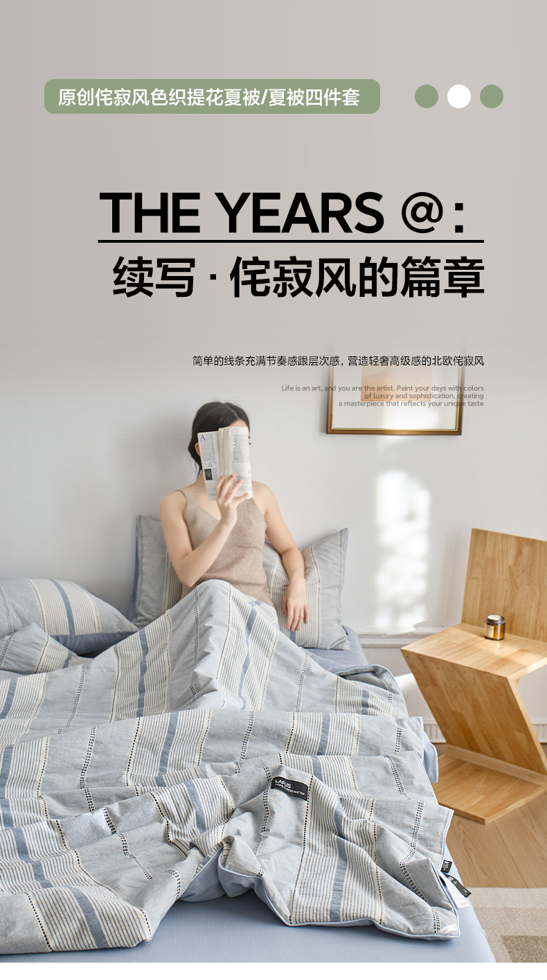 商品名称:2025新款原创侘寂系列全棉夏被-夏被四件套 瑞系霜蓝