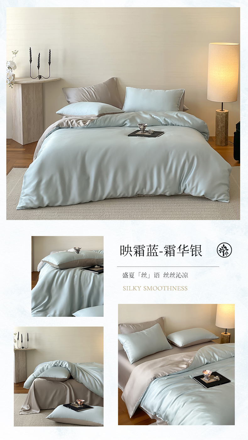 商品名称:启航家居 2025新款60s纯色兰精天丝四件套 映霜蓝-霜华银