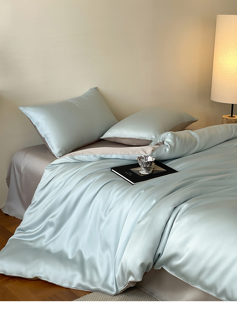 启航家居 2025新款60s纯色兰精天丝四件套 映霜蓝-霜华银