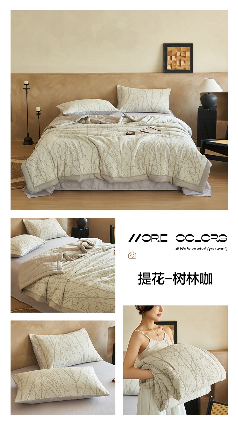 当前位置: 91家纺网 > 商品网购 > 床品套件 > 四件套 > 夏被四件套 > 2025新款全棉水洗棉三层提花大豆夏被四件套 提花-树林咖