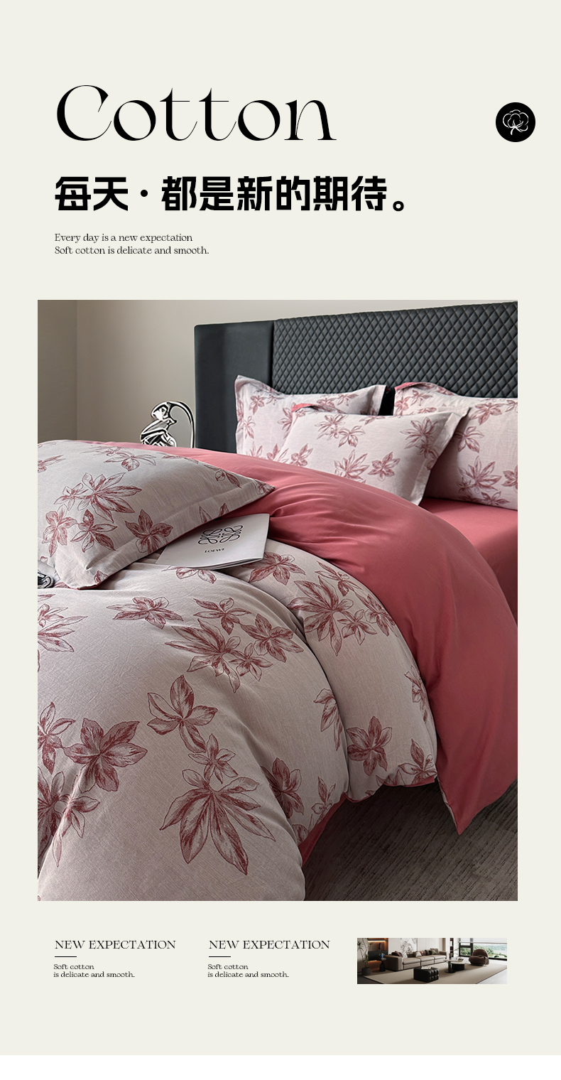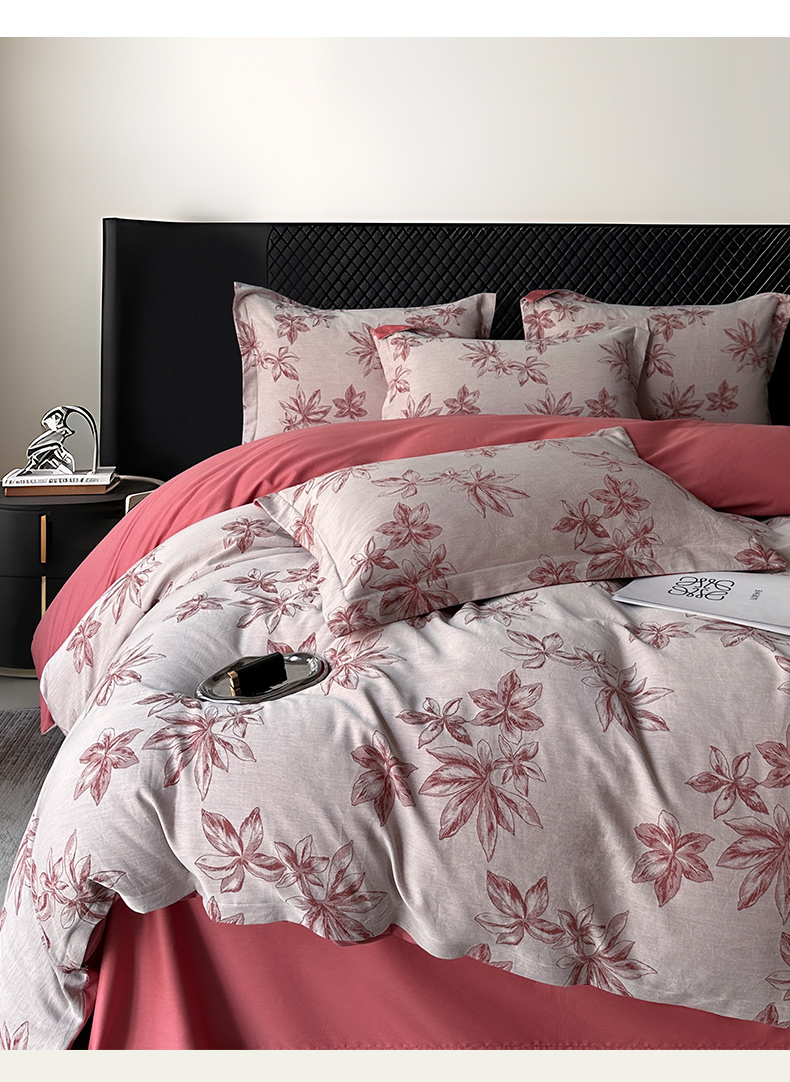 朵希曼 2025新款轻奢全棉提花系列四件套 晚棠 红