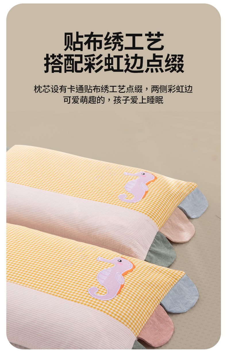 商品名称:(总)仁宇枕业 2025新款新品全棉水洗棉彩虹边贴布绣全荞麦系列幼儿园学生儿童枕头