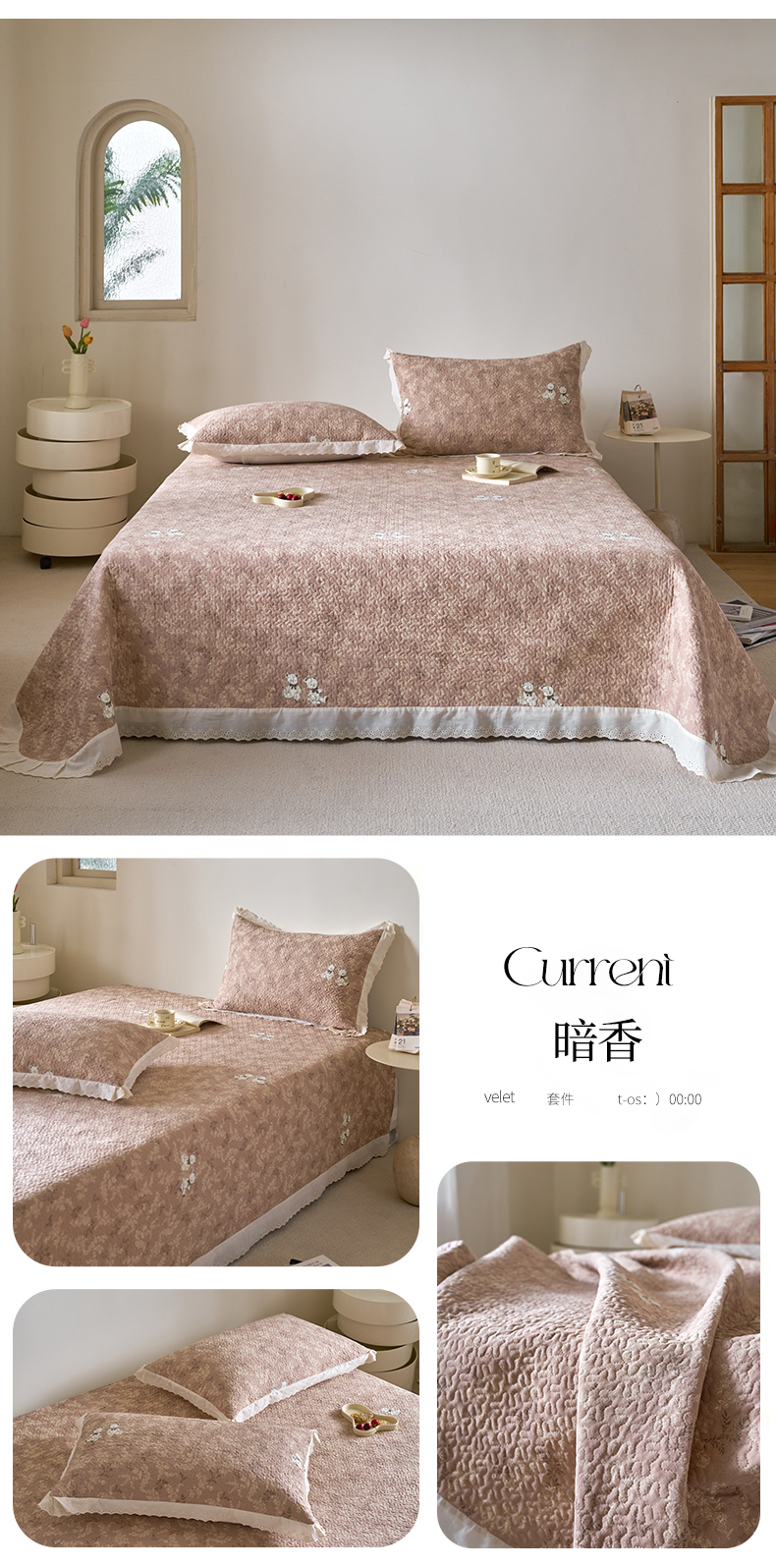 商品名称:漫仙阁家纺 2025新款热卖法式花边款加厚床盖床盖三件套 暗香